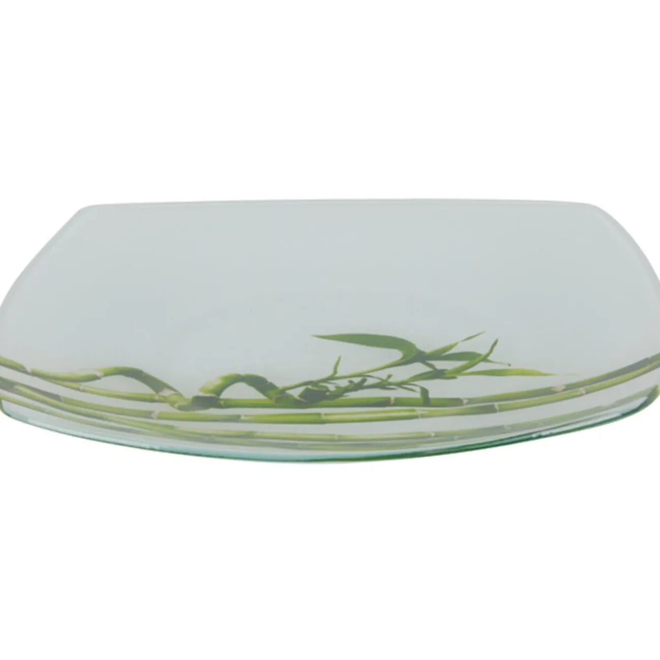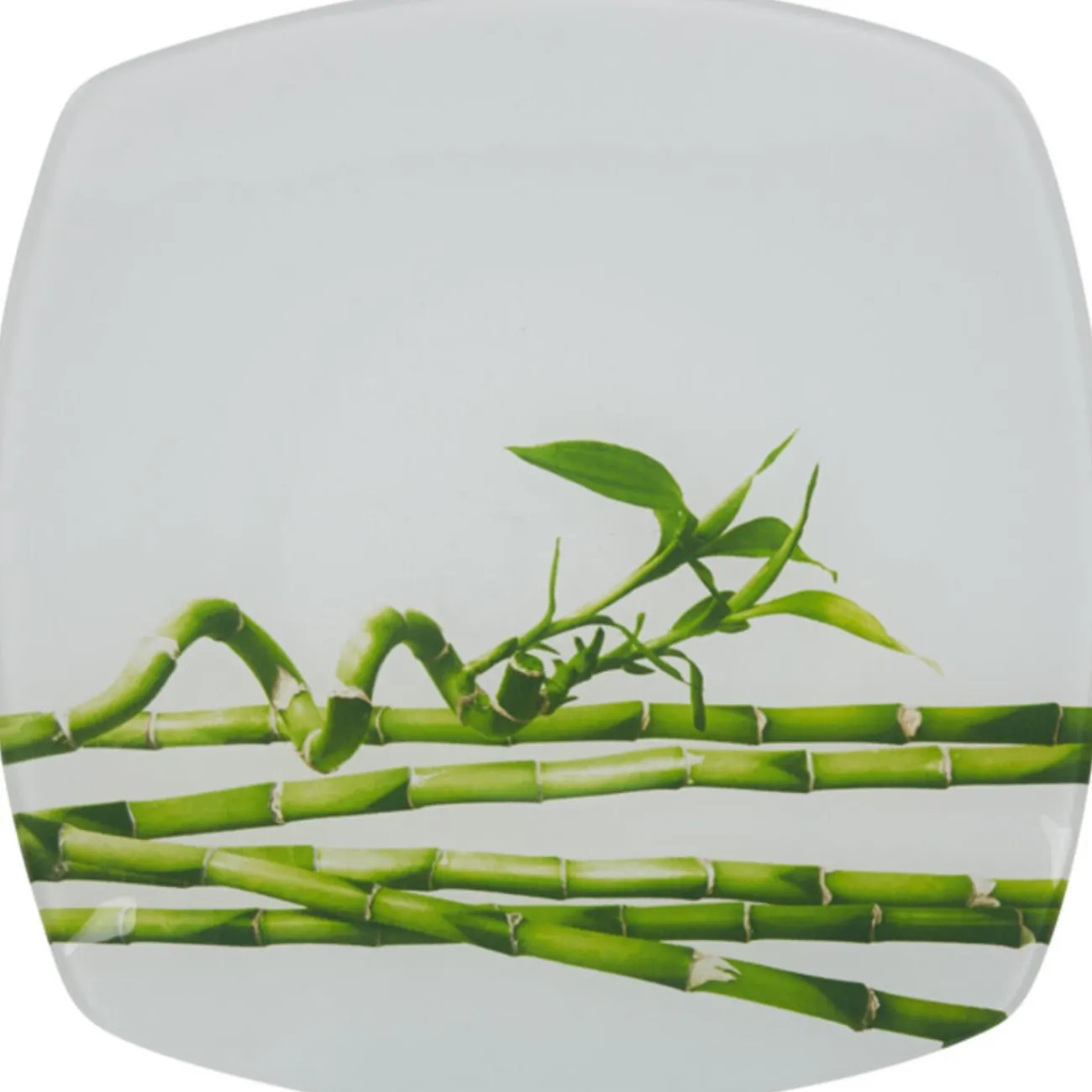 Assiette à dessert blanche design branches de bambou vertes, dim. 20×20 cm, verre.
