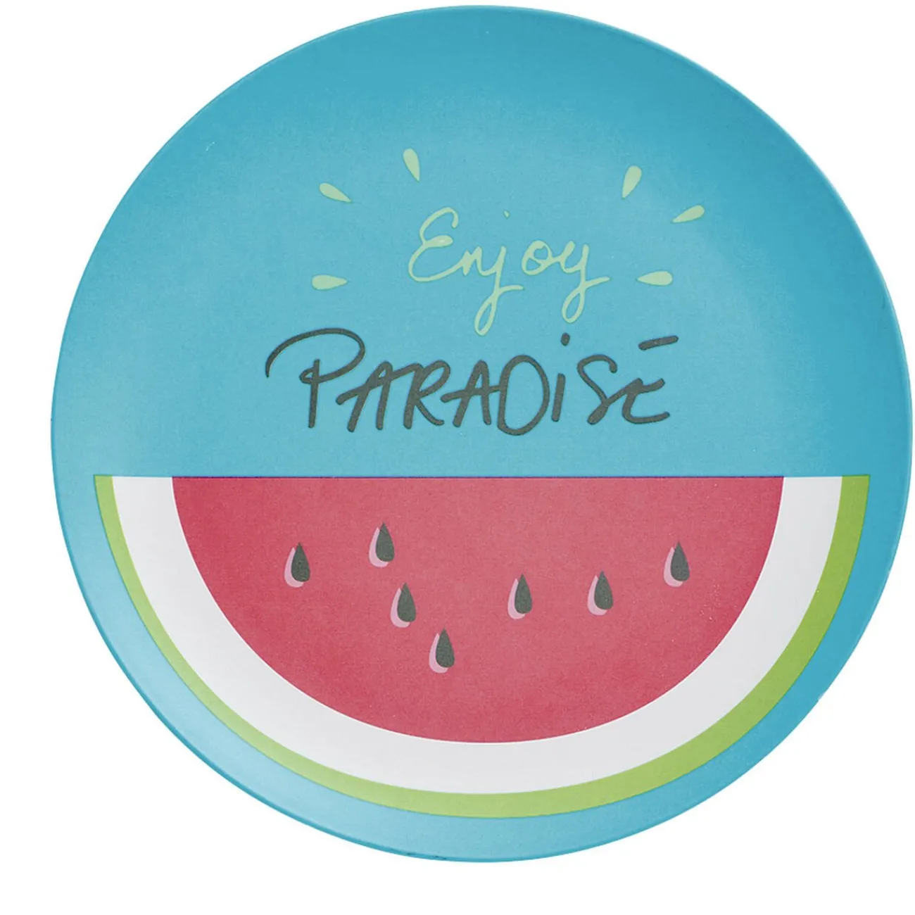 Cette assiette à dessert en plastique ronde sera parfaite pour égayer votre table estivale. Plongez en été grâce à sa décoration pastèque et son incription « Enjoy Paradise ».