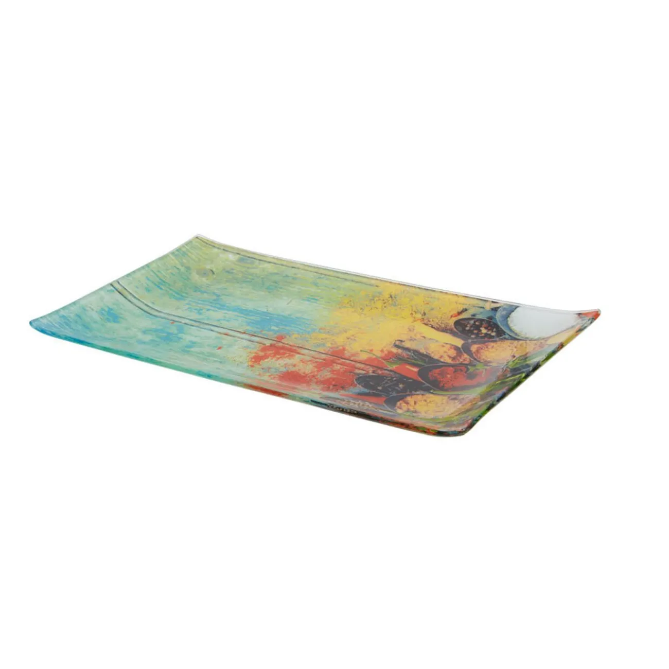 Assiette à dessert rectangulaire multicolore design épices.