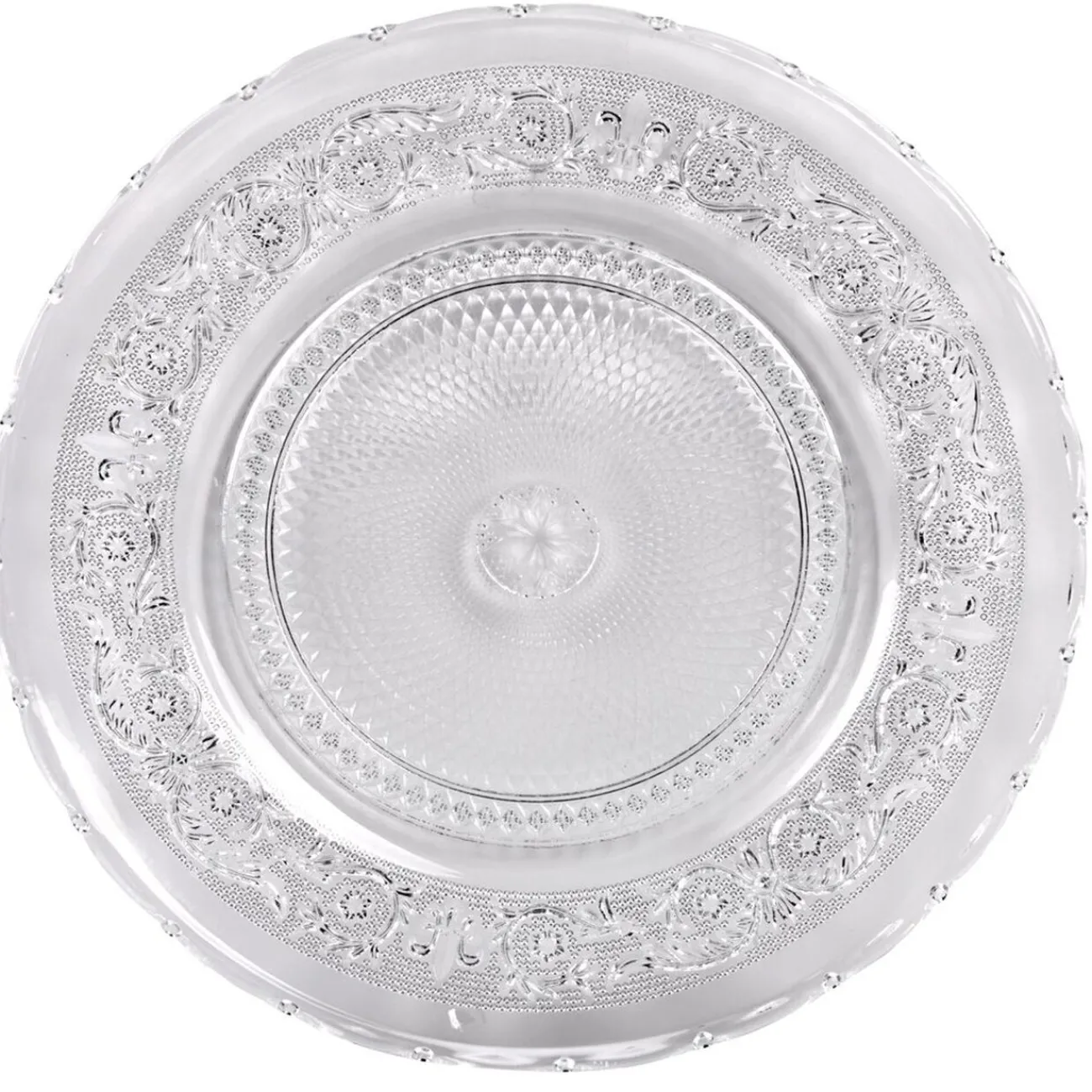 Présentez joliment vos mets culinaires avec cette assiette ronde transparente au design ciselé.