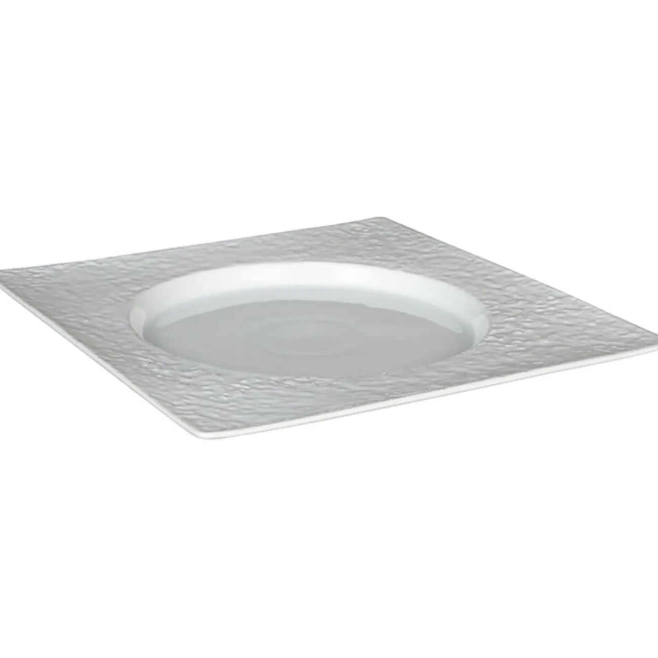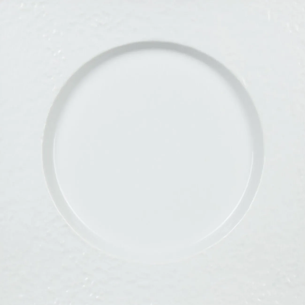Assiette plate blanche carrée avec intérieur rond, dim. 25,5×25,5 cm, porcelaine.