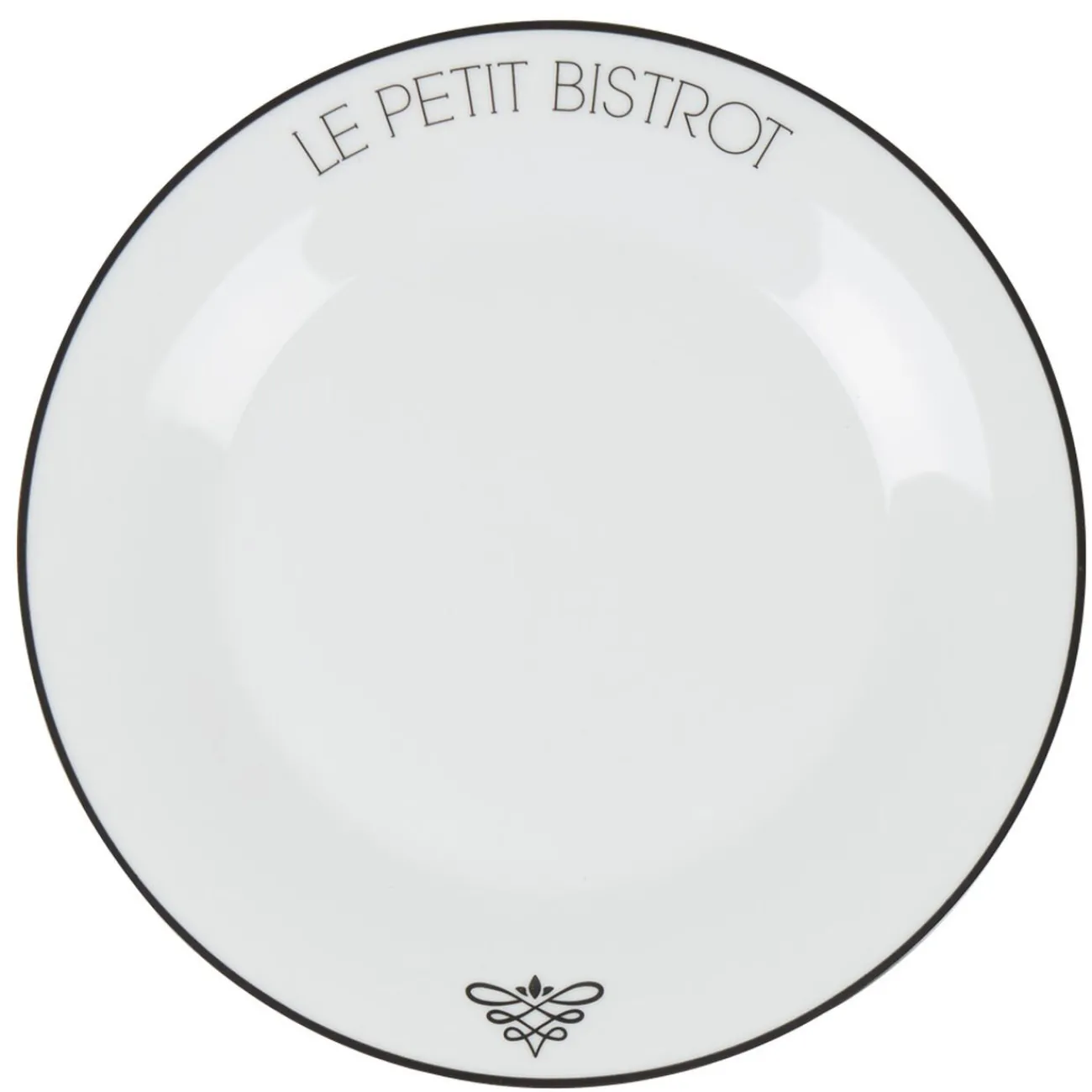 Assiette plate blanche et noire « Le petit bistrot », dim. Ø27xh.2,5 cm, porcelaine.