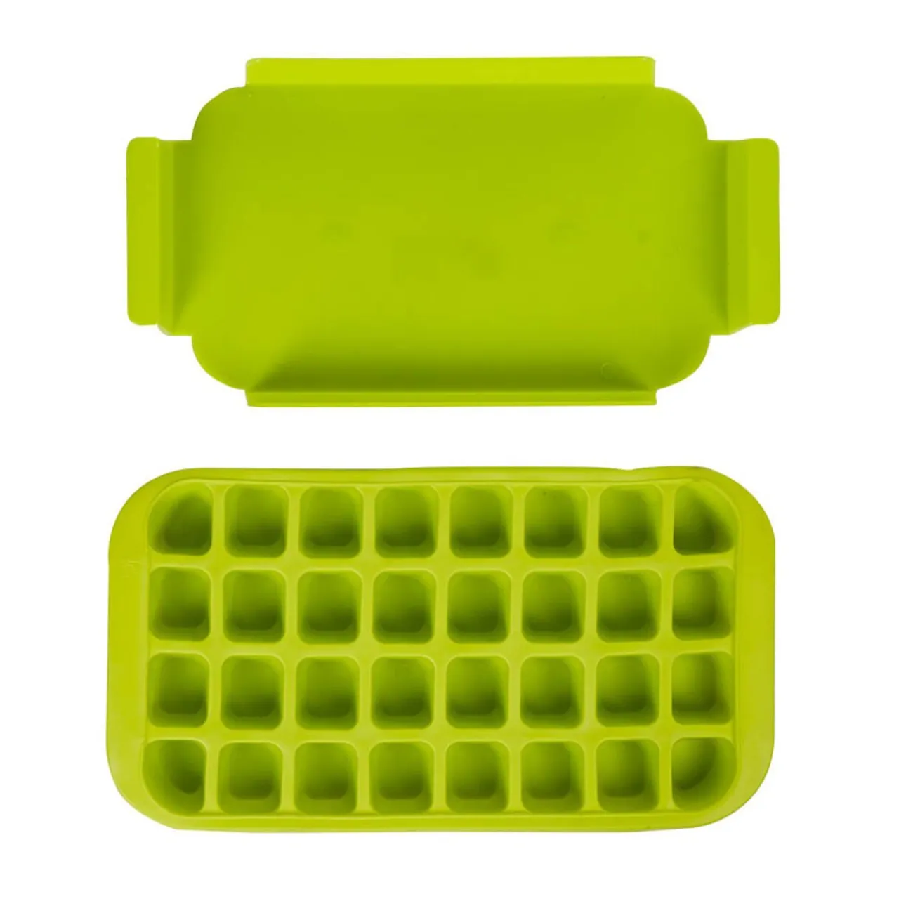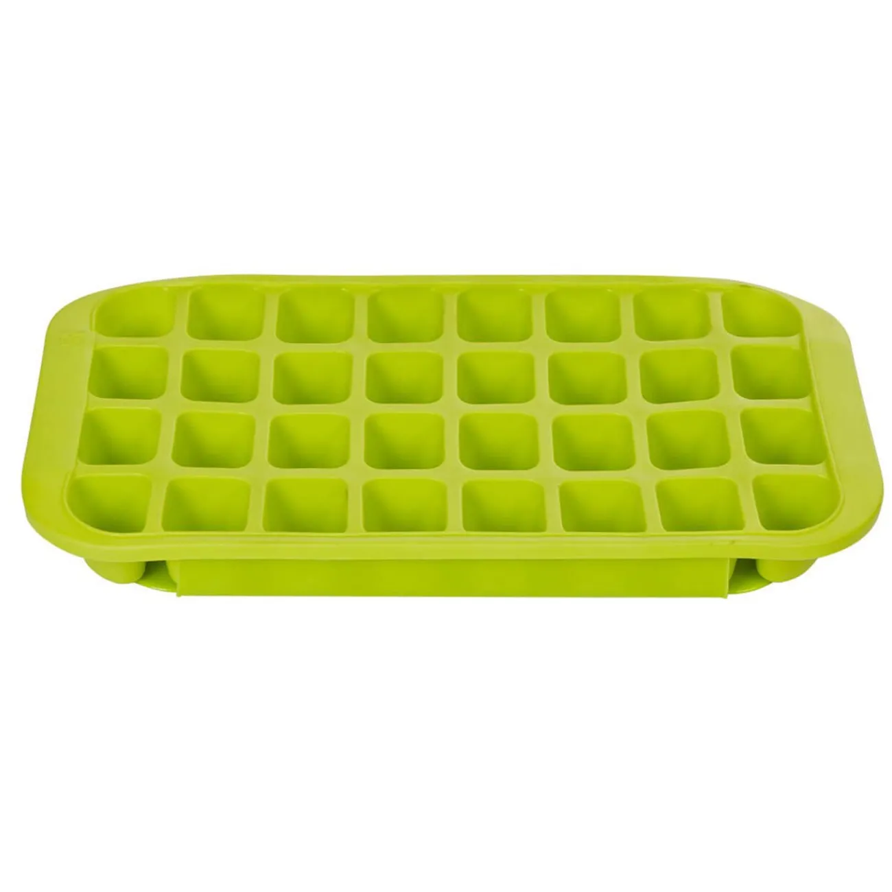 Bac à glaçons 32 compartiments, en plastique de couleur vert.