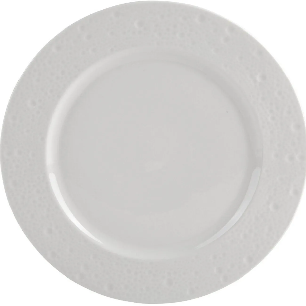 4 assiettes plates blanches, effet martelé.