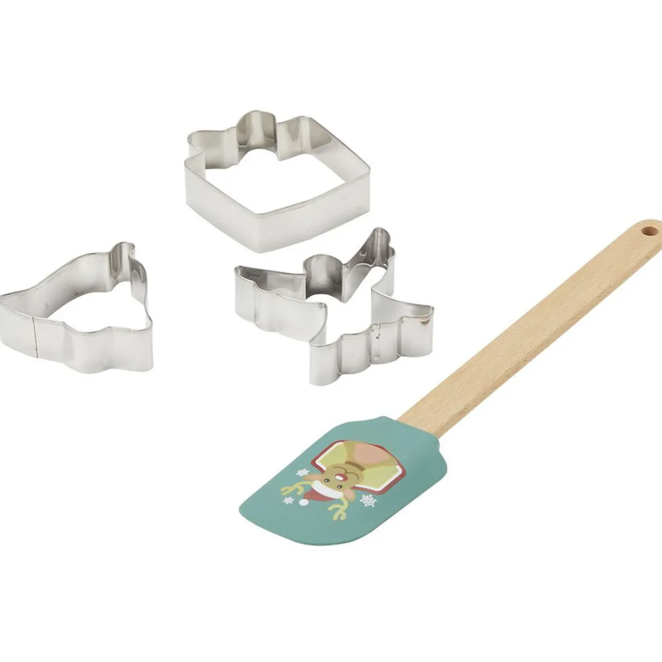 Set de cuisine composé d’une spatule et deux emporte-piècesen inox pour confectionner de délicieuses pâtisseries de Noël