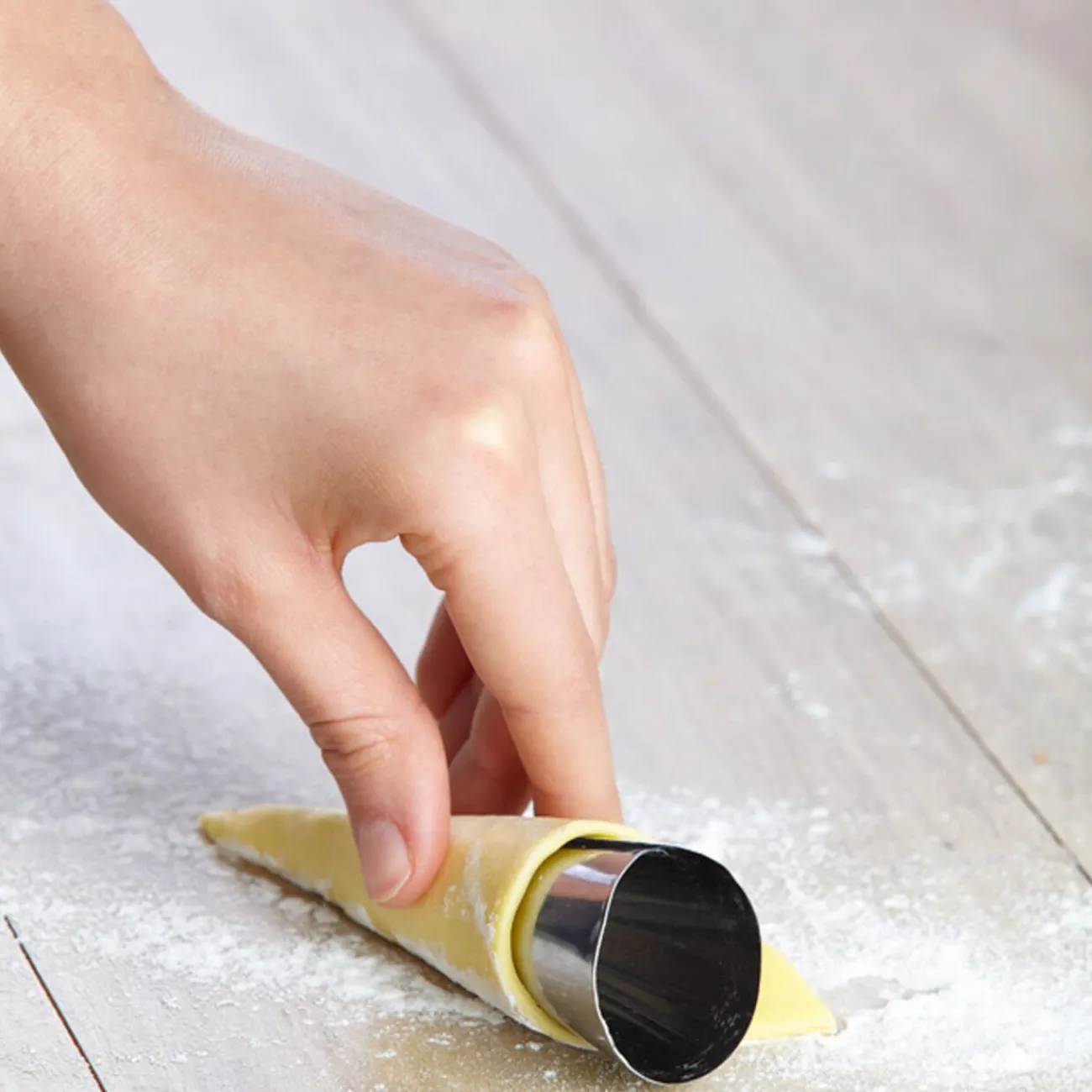 3 moules cônes à garnir, L. 11 cm, métal. S’utilise avec tous types de pâtes.