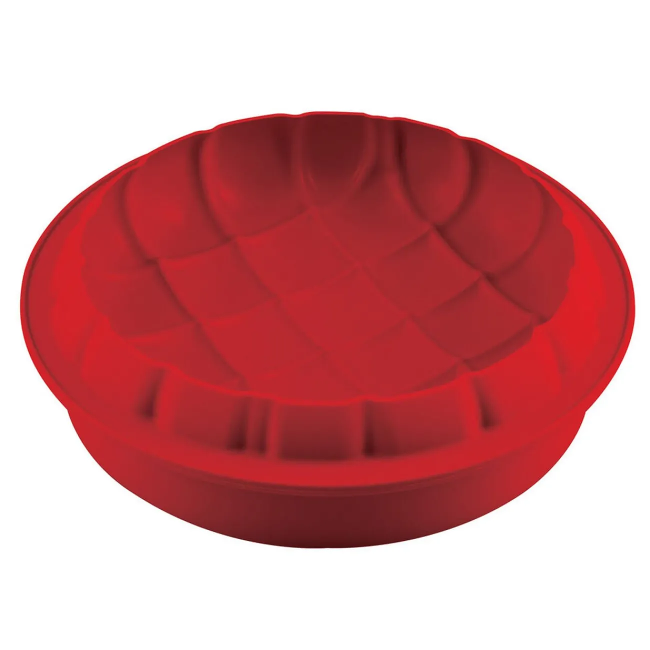 Moule en silicone rouge en forme de coussin rond matelassé.