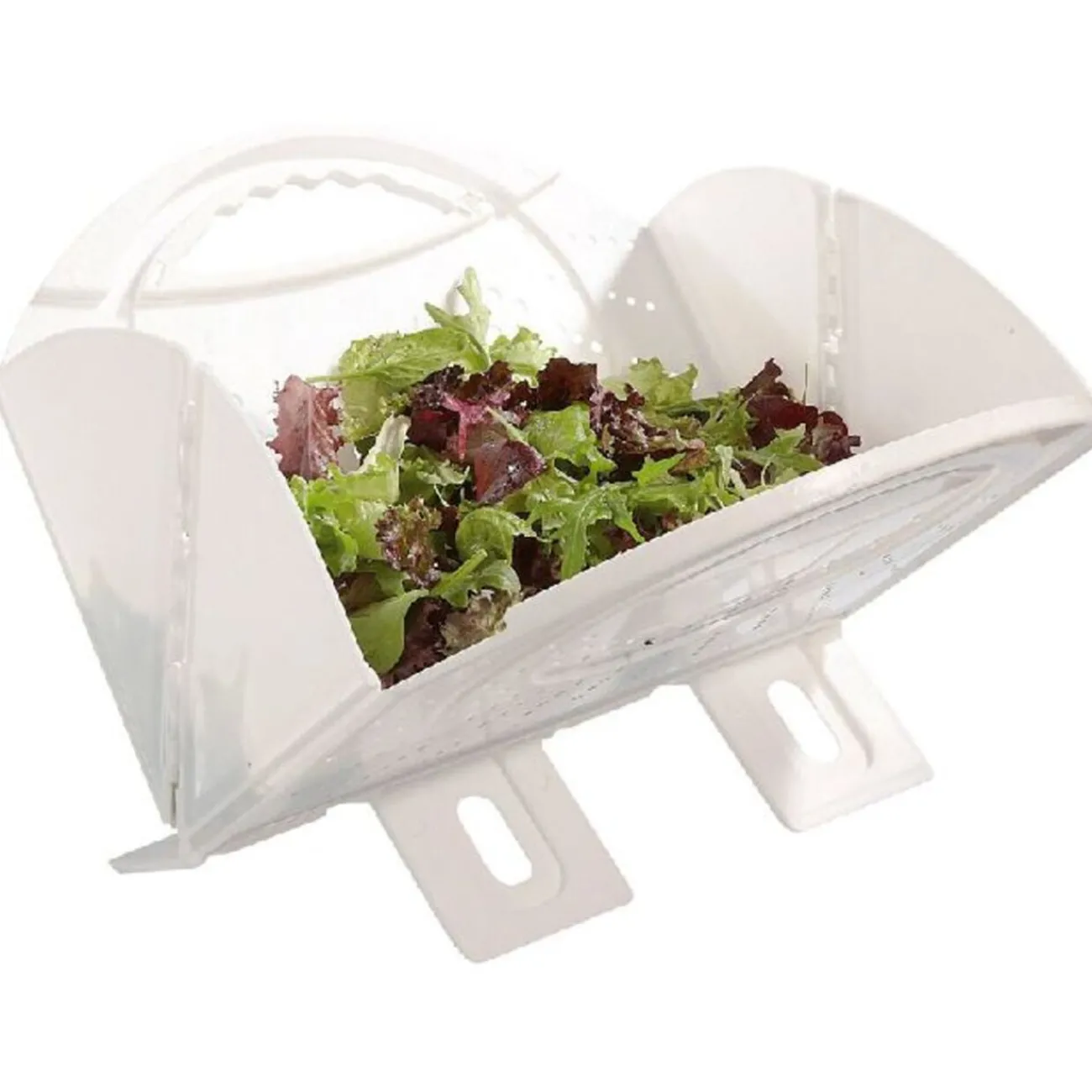 Passoire pliante extra plate en plastique, maniable grâce à ses anses, avec bec verseur très pratique. Elle se nettoie très facilement. Dim. 31,5x28x1,9 cm.