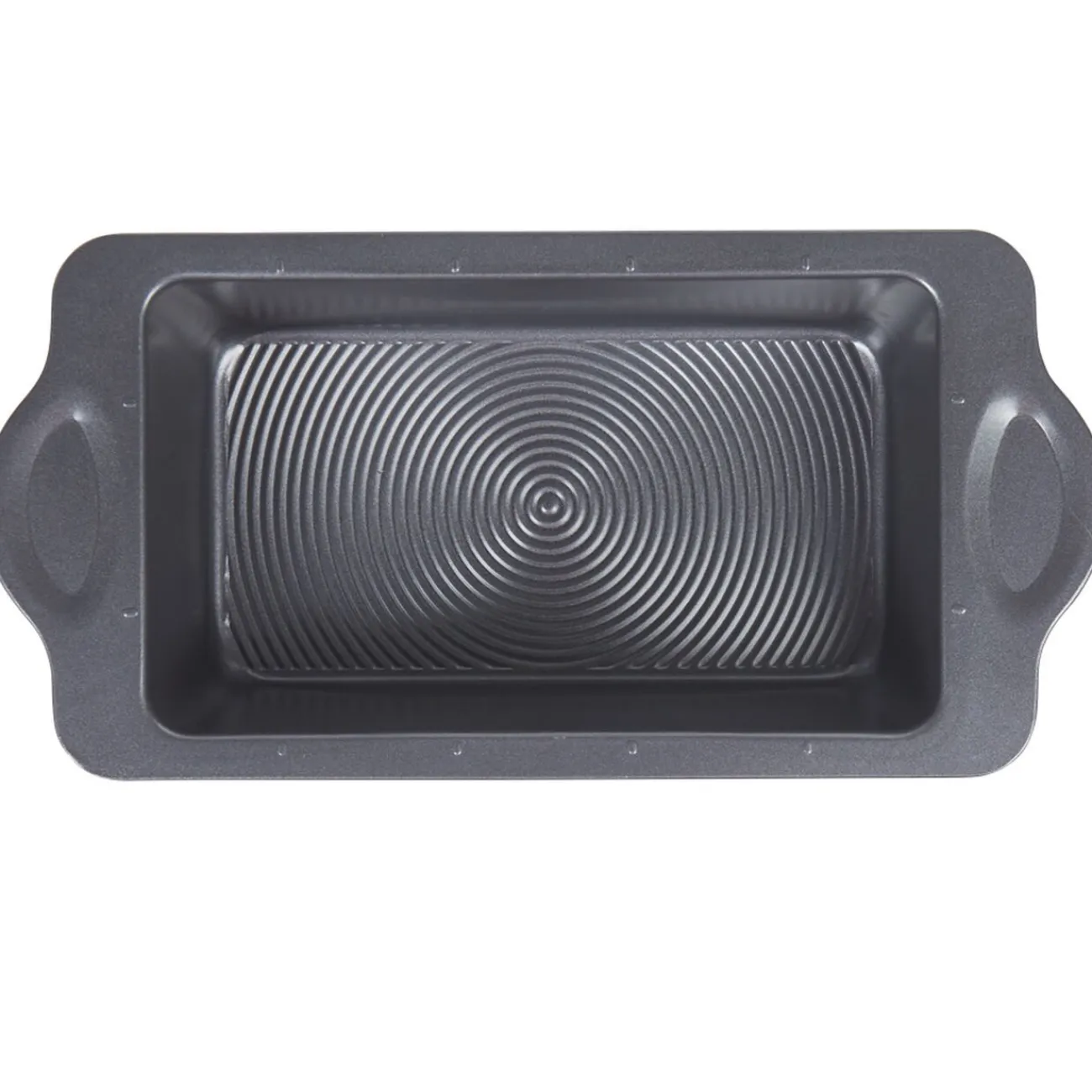 Moule à cake en métal gris avec revêtement à fond texturépour un démoulage facile!