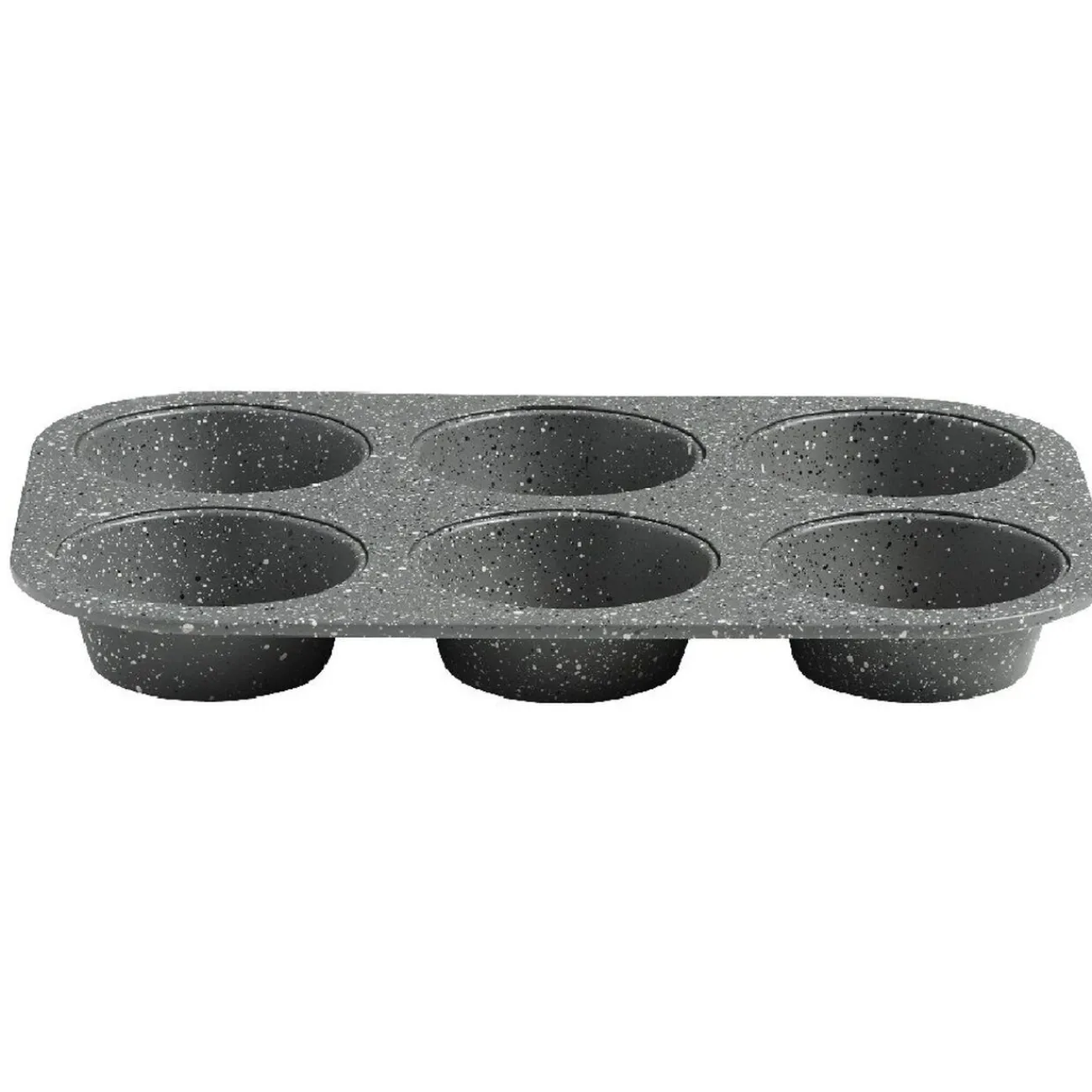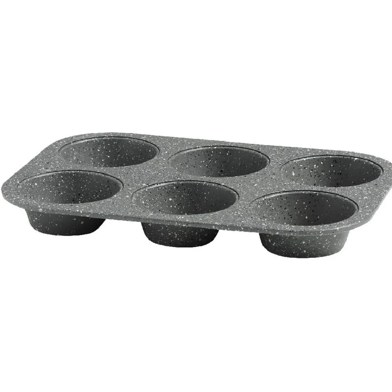 Moule à 6 muffins gris en métal, revêtement effet marbre.