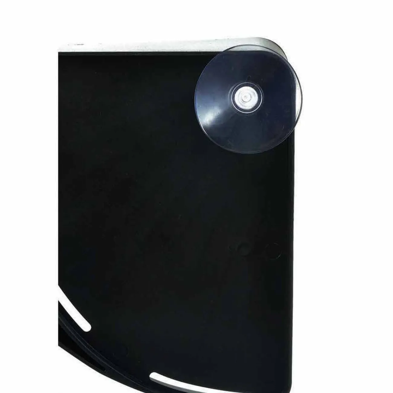 Ce support en plastique noir se fixe simplement à l’aide de sa ventouse sur le coin d’un évier.