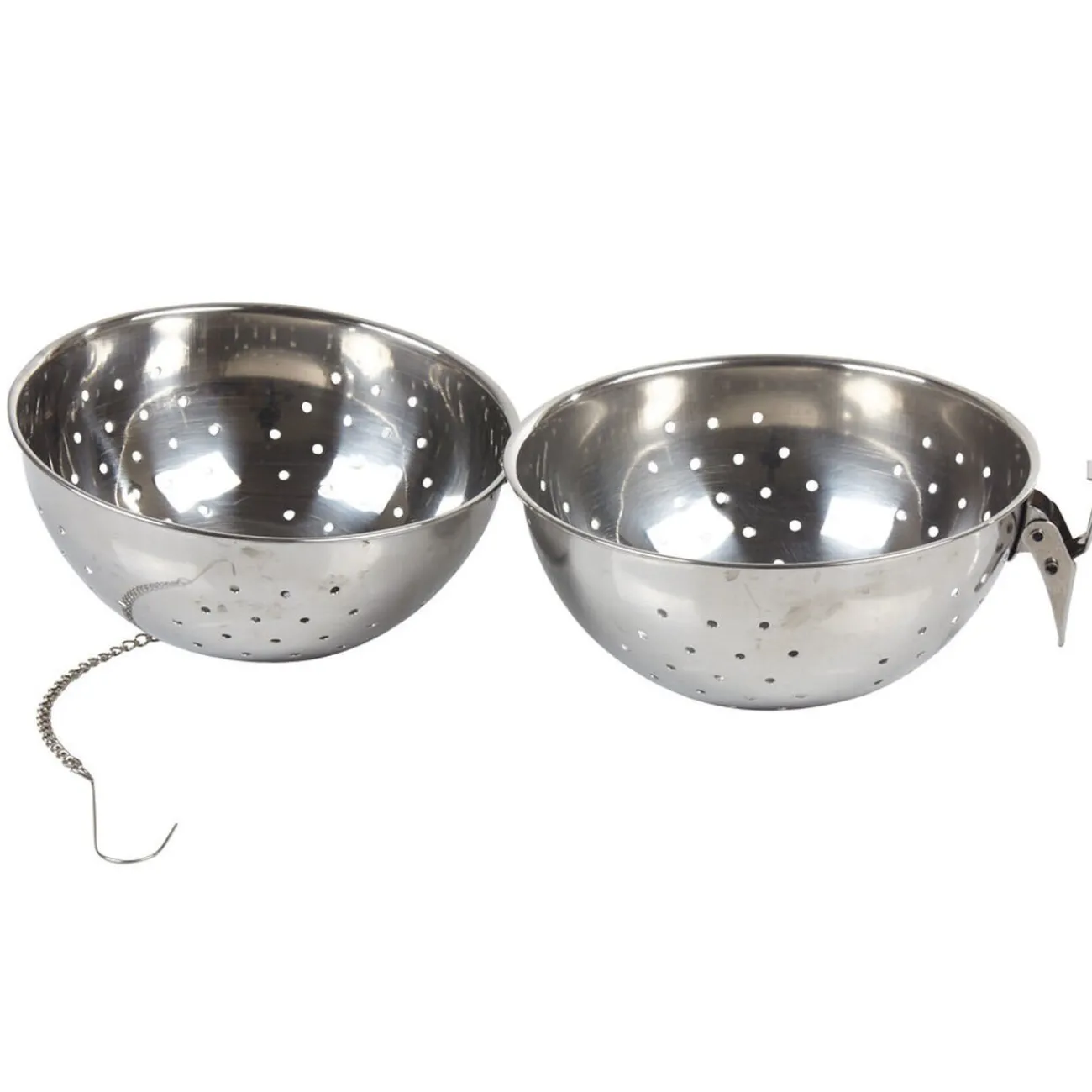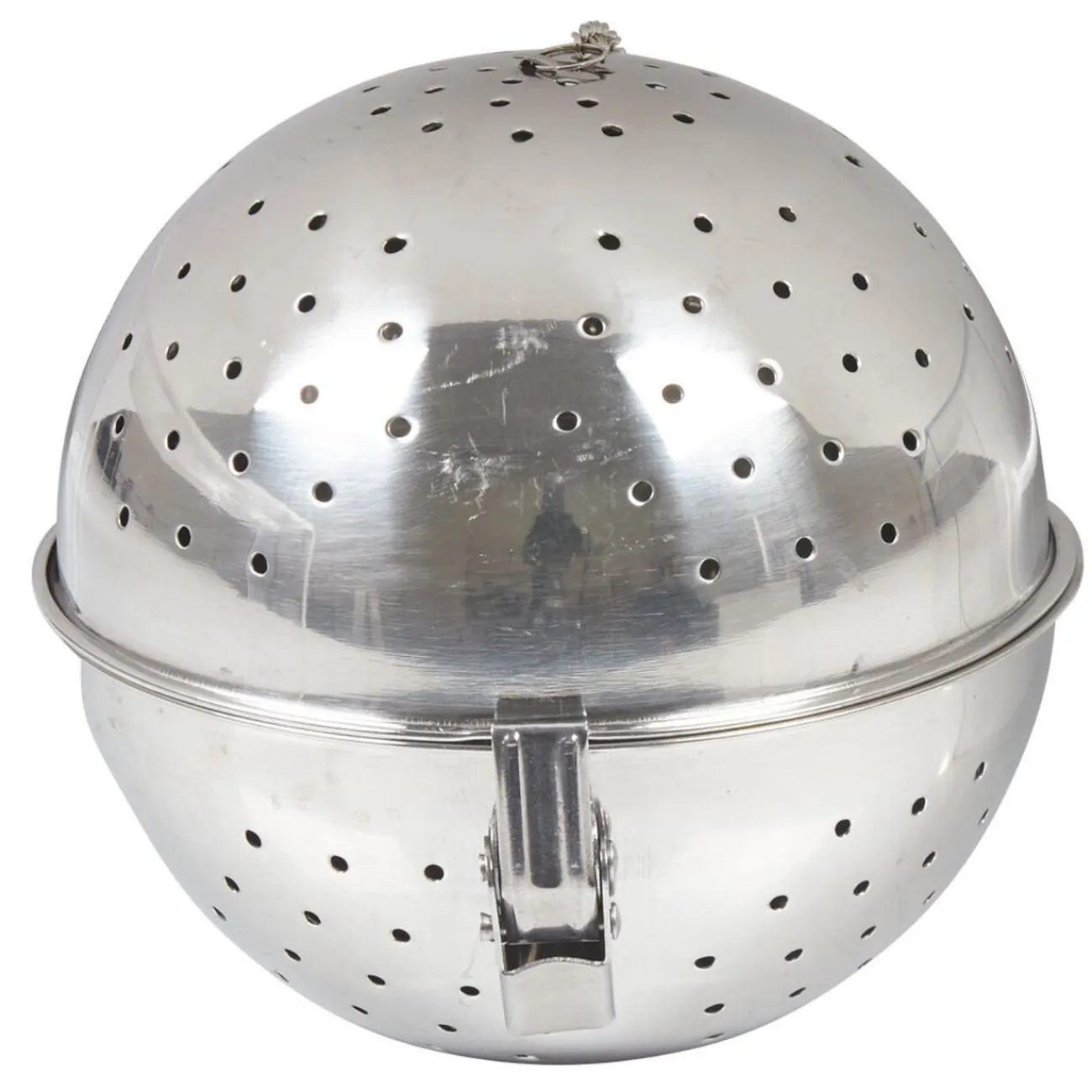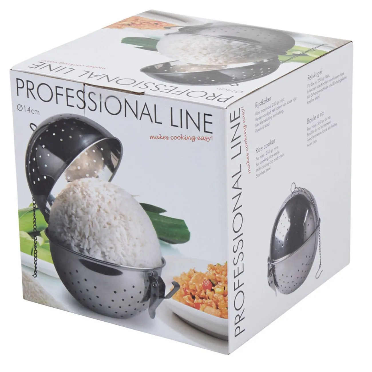 Cuiseur à riz en forme de boule, ø 15 cm, inox. Mettre le riz à l’intérieur de la sphère et placer dans de l’eau bouillante.