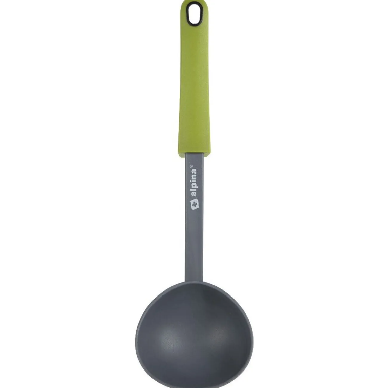 6 ustensiles de cuisine en nylon : 1 louche, 1 spatule trouée, 1 cuillère trouée, 1 cuillère de service, 1 cuillère à spaghetti et 1 écumoire. Support inclus dim. 13xh.29 cm.