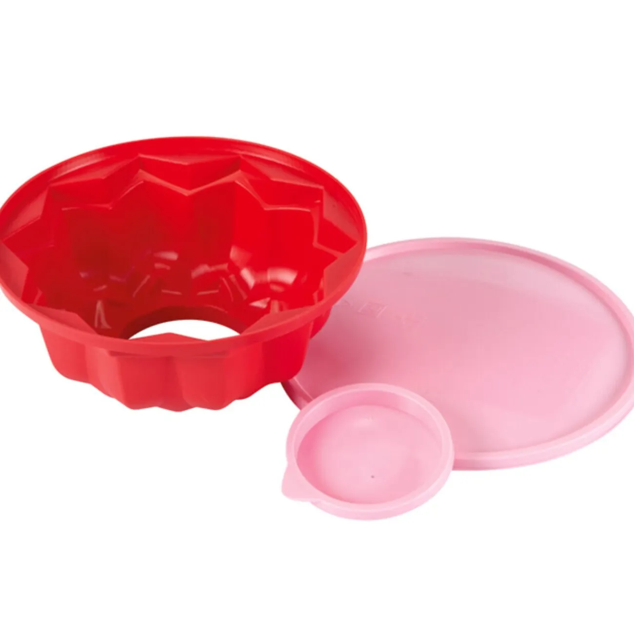 Moule à charlotte Ø 20 cm et 4 mini moules Ø 8 cm, plastique, livret de recettes.