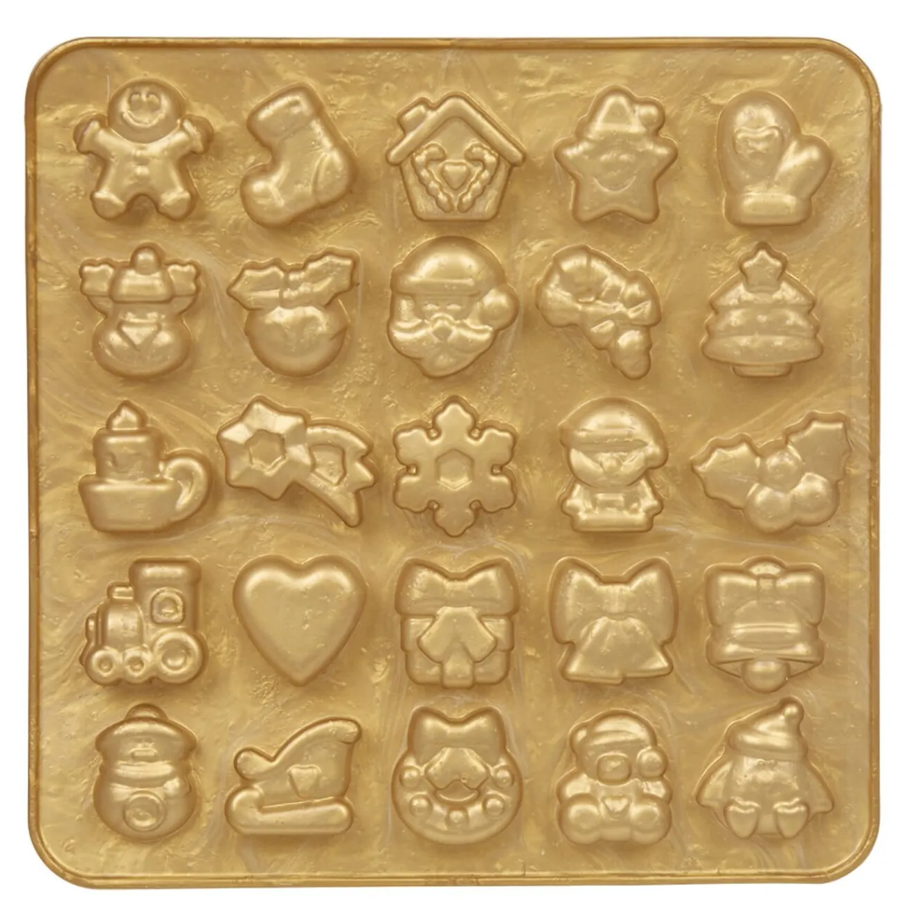 Profitez d’un joli calendrier de l’avent aux couleurs festive en attendant Noël et rendez heureux vos proches avec de petits cadeaux dans l’assiette en créant de petits savons en forme de chaussette, de traineau ou de sapin. Vous pourrez utiliser ce moule de 25 formes pour cuisiner des gourmandises de Noël en forme de petit train, d’étoile ou de père Noël.
