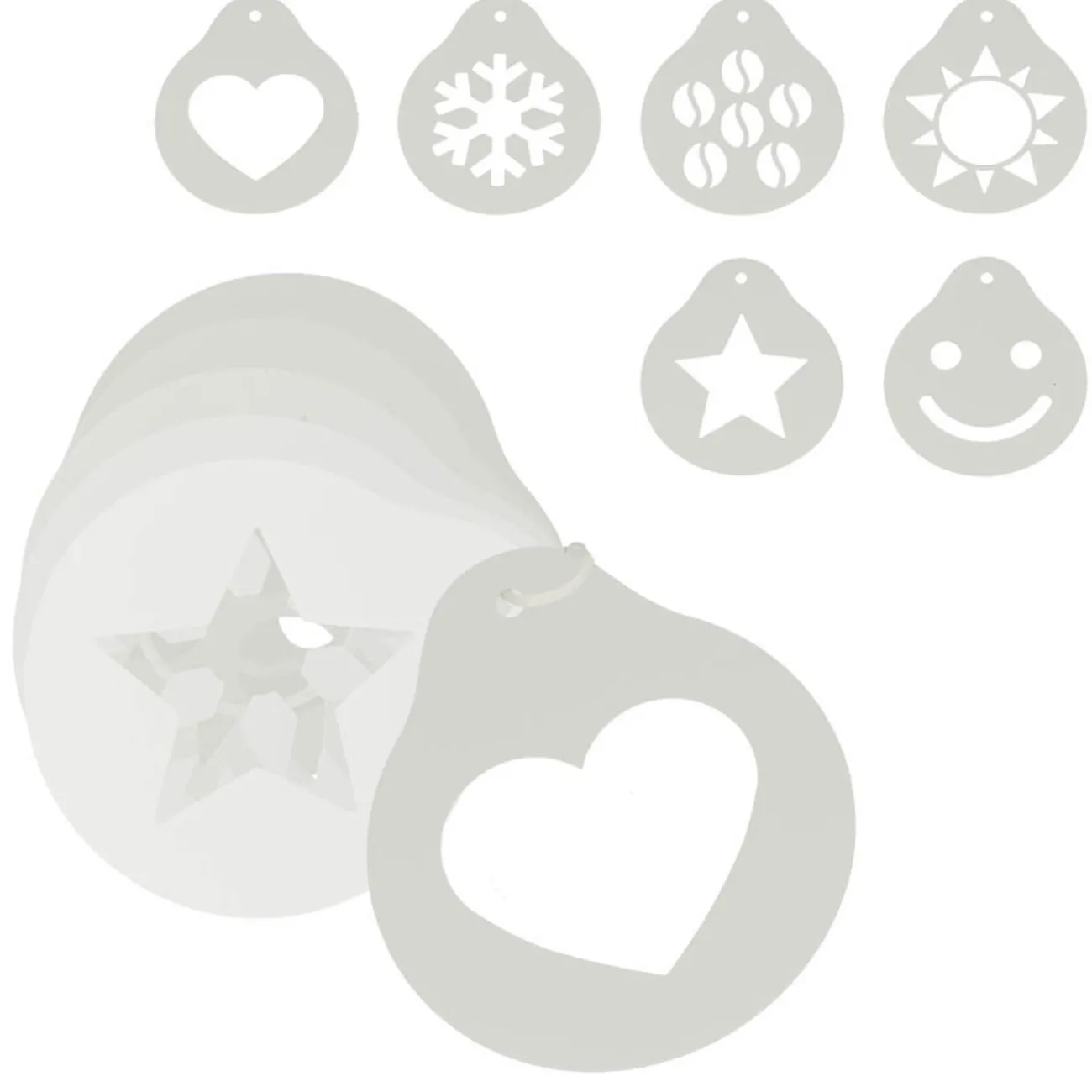 Surprenez vos invités avec ces 6 minis pochoirs à café Metaltex pour faire de jolis dessins sur la mousse d’un café, d’un chocolat, ou même un cappucino.
