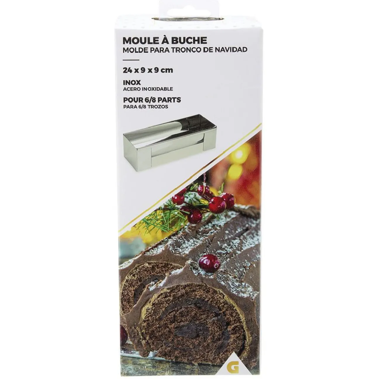 Moule en inox pour confectionner une bûche de 6 à 8 personnes.