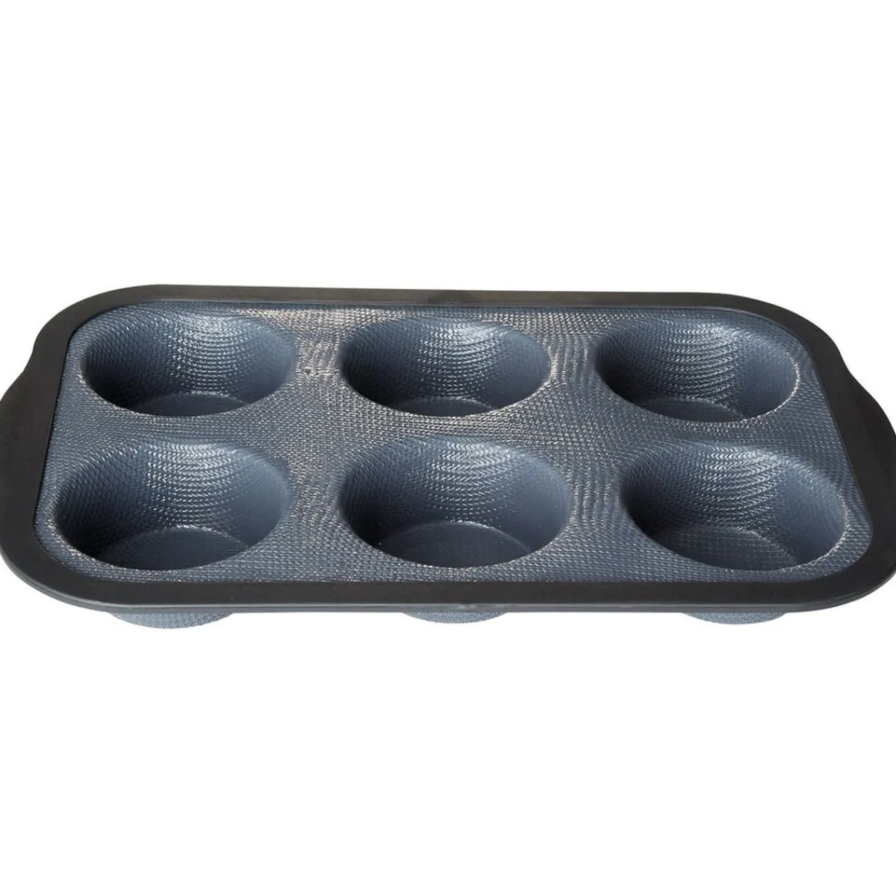 Moule gris et noir pour confectionner 6 merveilleux muffins. Son association de 3 matières vous offrira une cuisson parfaite et qui ne colle pas !
