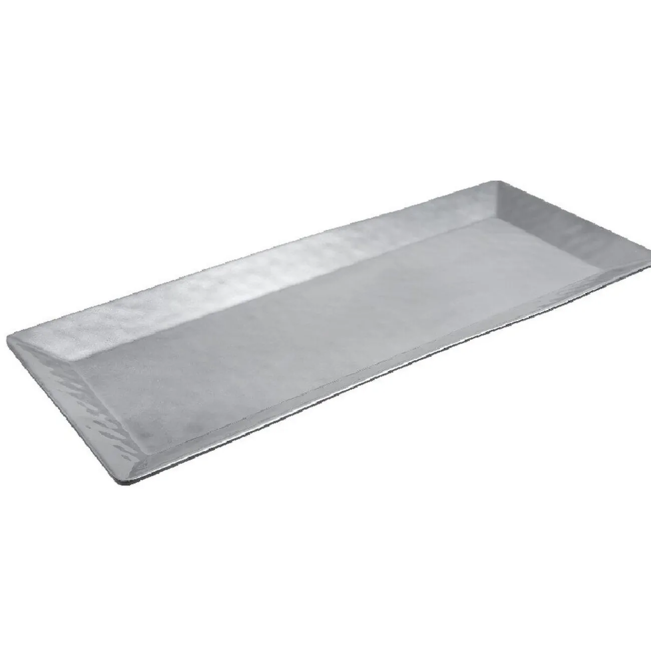 Plat rectangulaire martelé argenté avec verso de couleur noir.