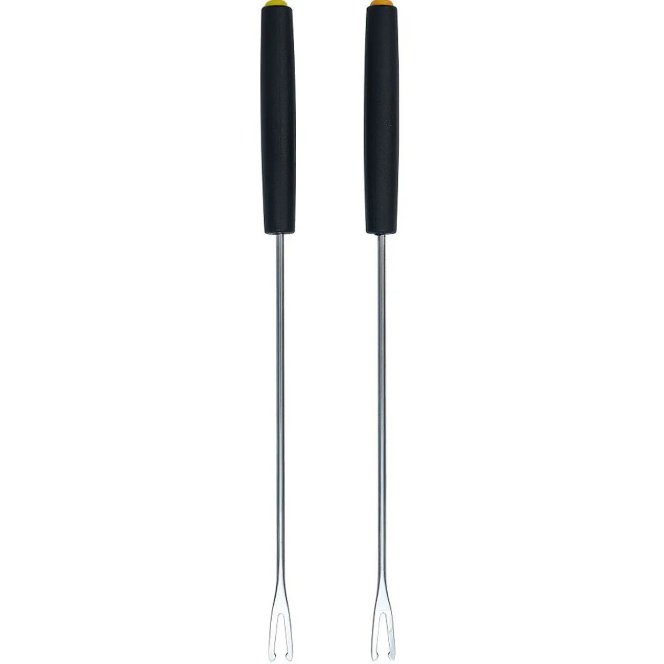 Lot de 2 piques à fondue en acier avec poignées isolantes en plastique et extrémité de couleur différente pour reconnaître son pique.