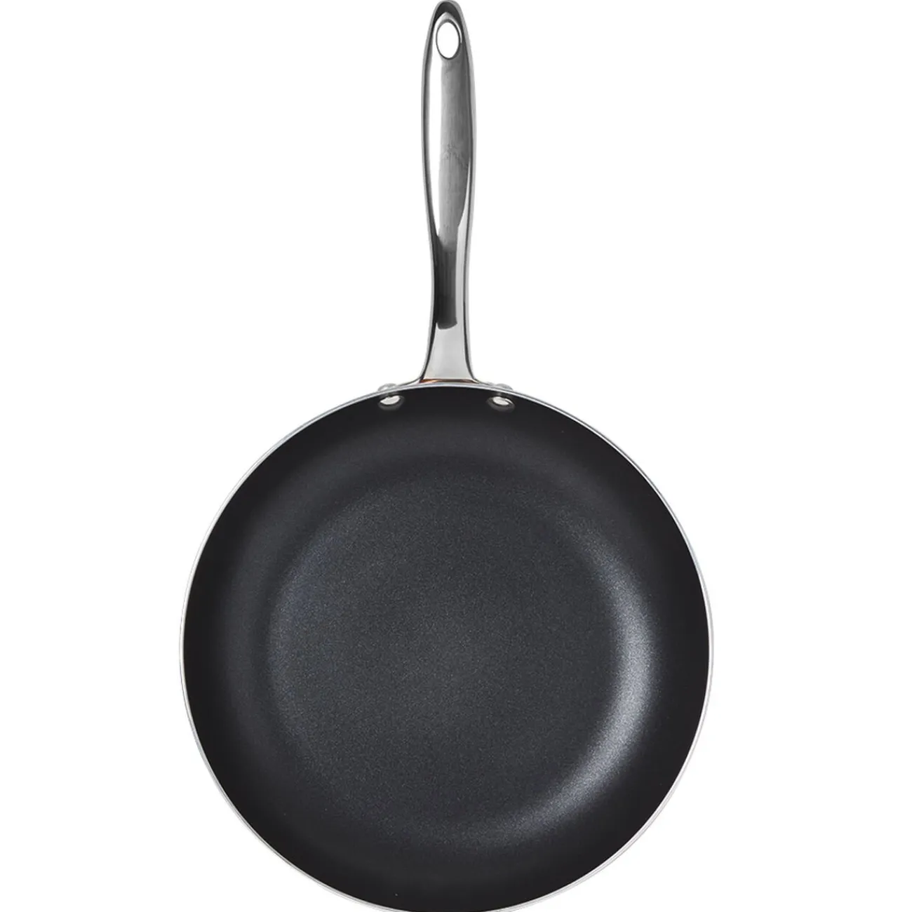 Grande poêle en aluminium avec couche extérieure en cuivre pour une finition élégante et de qualité.