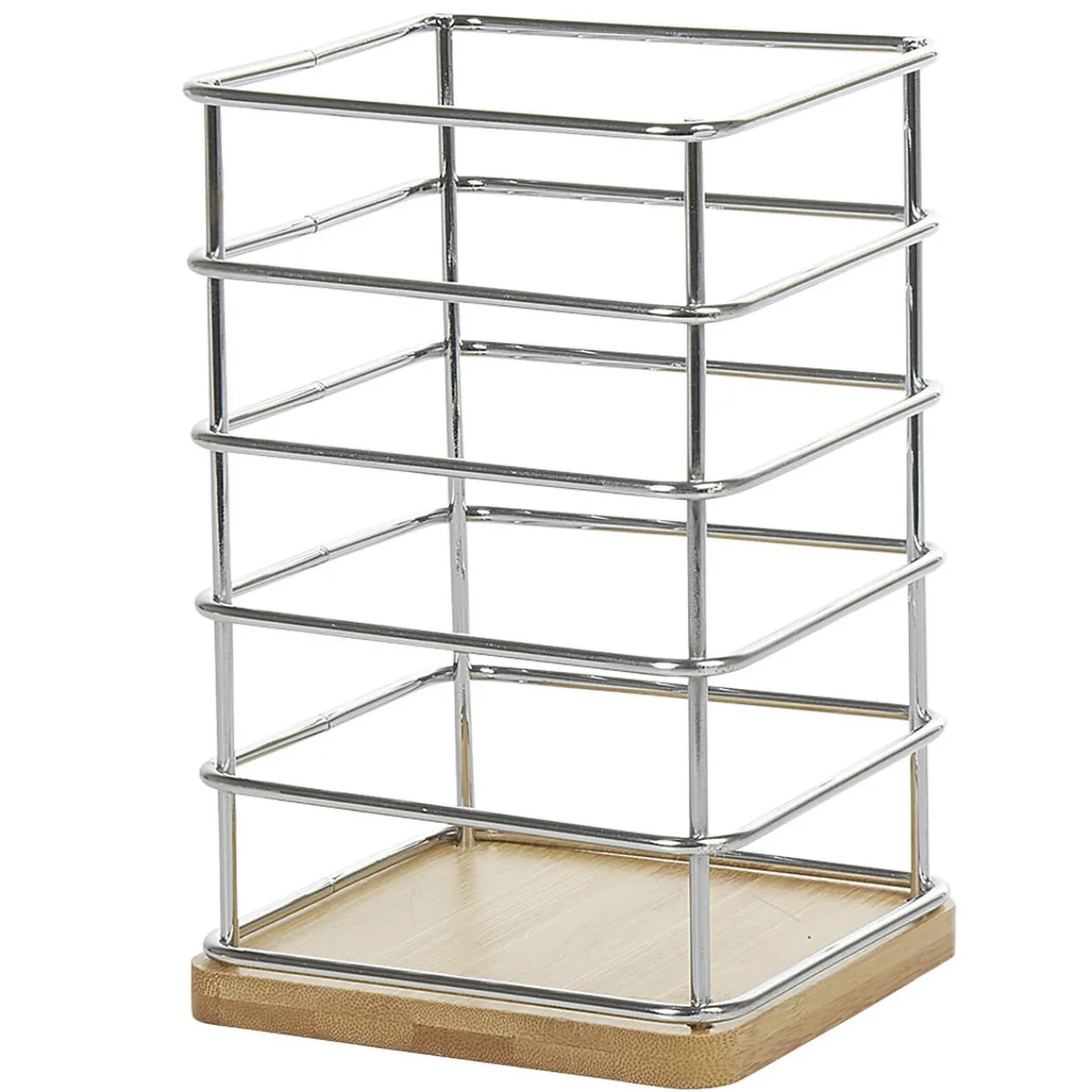 New Porte ustensiles de cuisine en métal avec socle en bambou Rangement De Cuisine