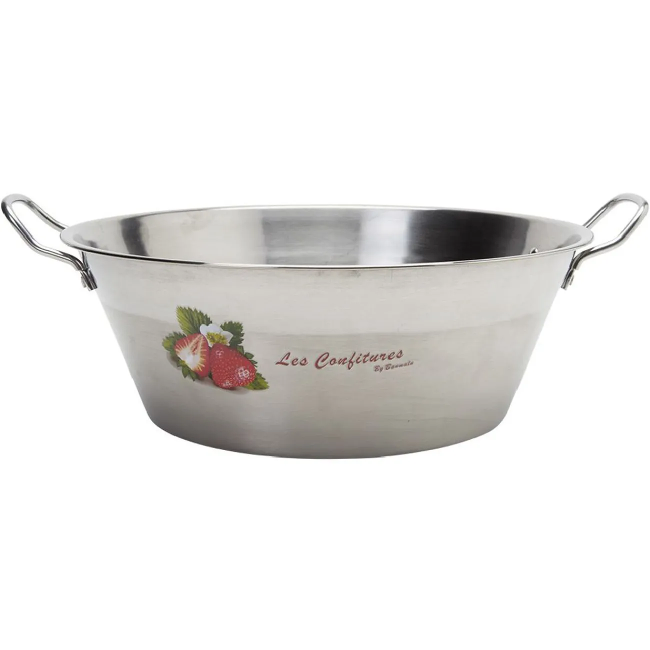 Grande bassine en inox, idéale pour préparer de délicieuses confitures faites maison.