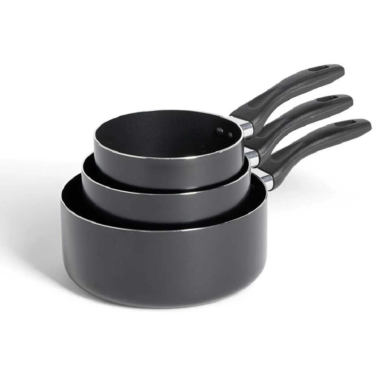 Cet ensemble polyvalent de 3 casseroles en aluminium noir est compatible avec tous types de feux à l’exception de l’induction.