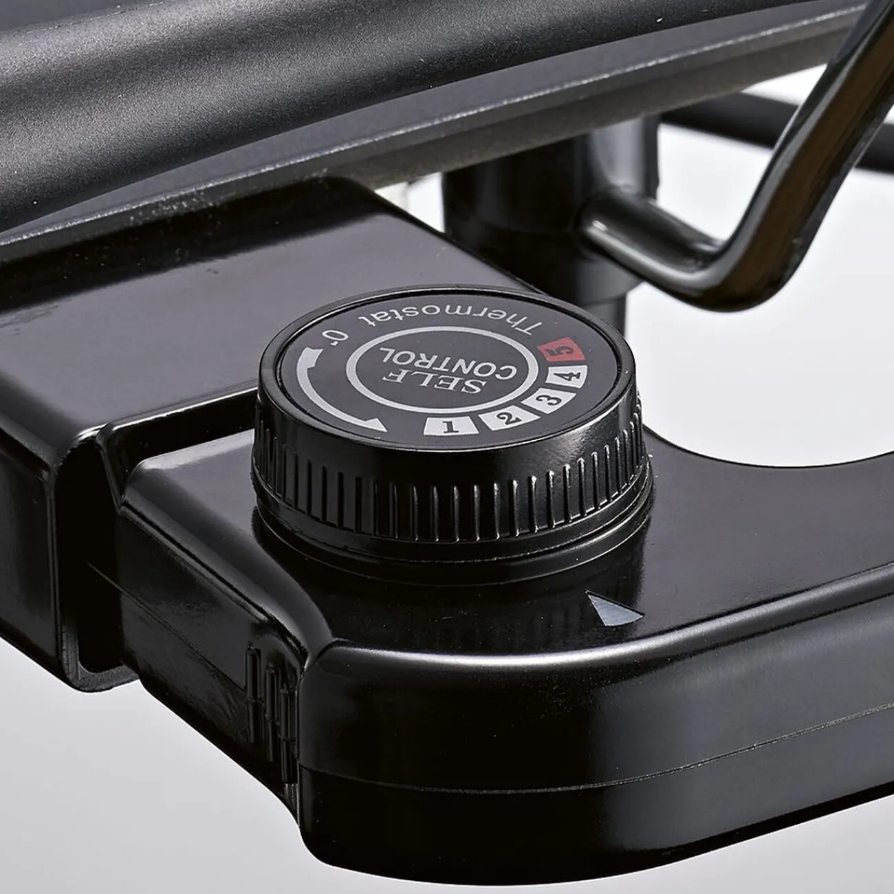 Plancha électrique avec bac récupérateur de graisse et larges poignées pour pouvoir la transporter facilement aussi bien à l’intérieur qu’à l’extérieur.