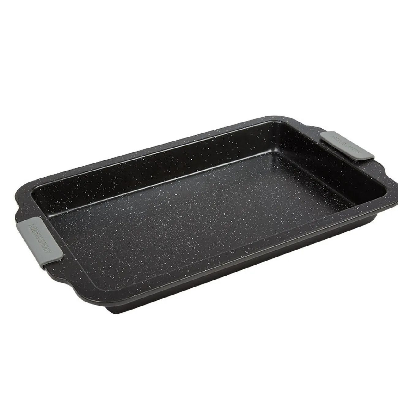 Plat à four Arthur Martin en aluminium effet pierre avec poignées en silicone.
