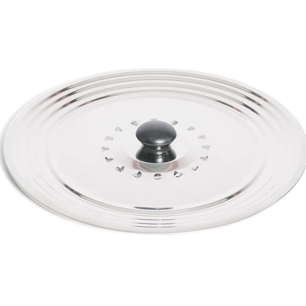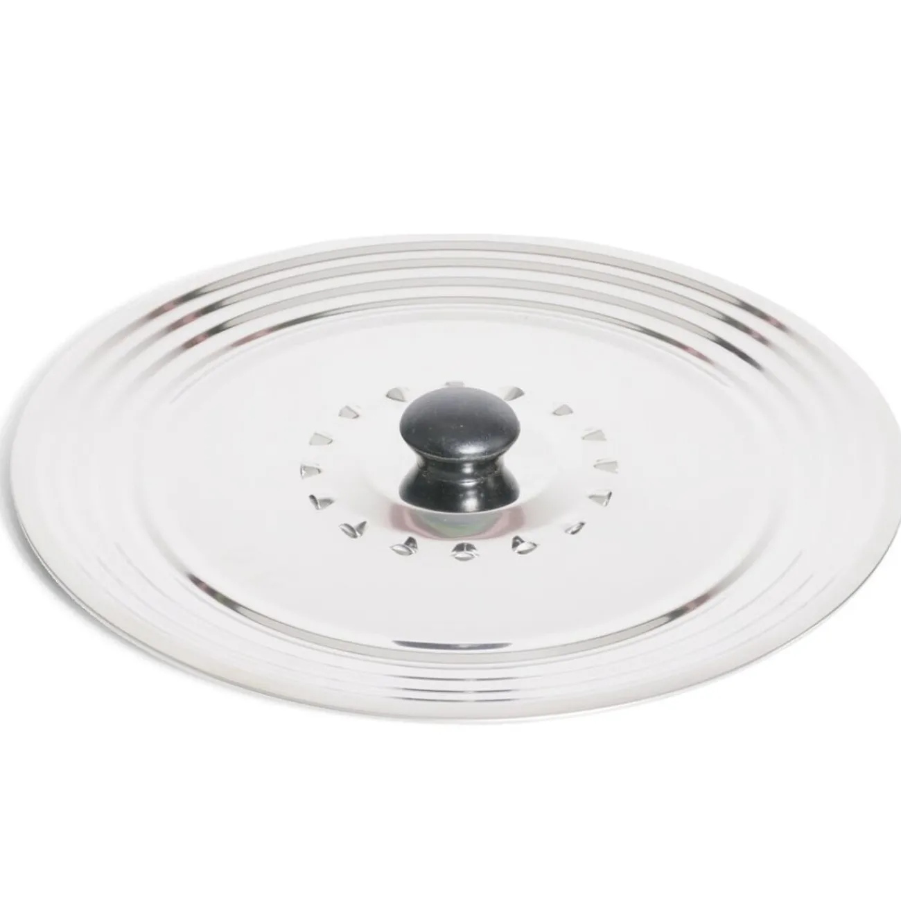 Terminé les éclaboussures lors de la cuisson de vos aliments grâce à ce couvercle en inox muni d’une poignée centrale.