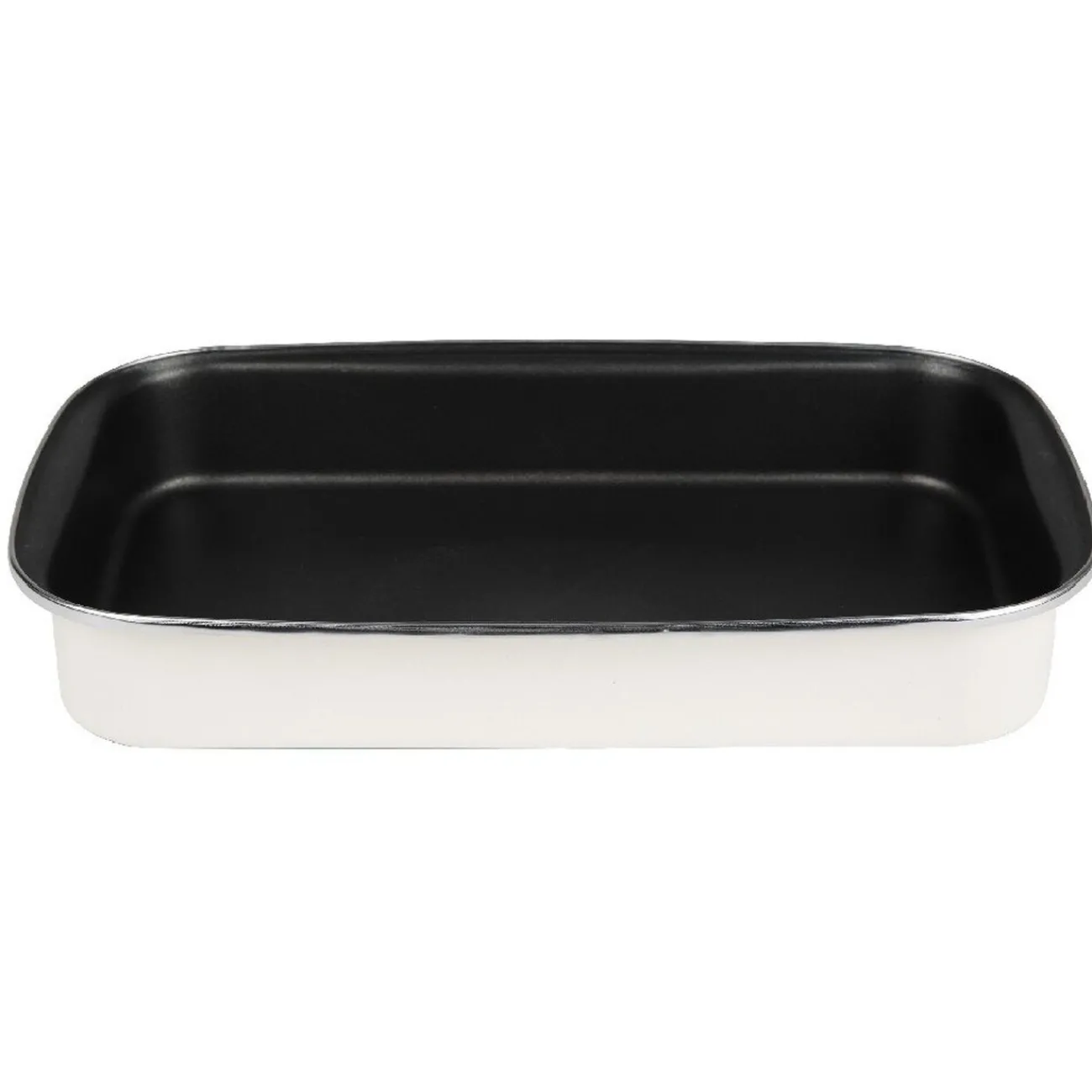 Plat à four rectangulaire en acier émaillé anti-adhésif noir et beige de 40,5×25 cm.
