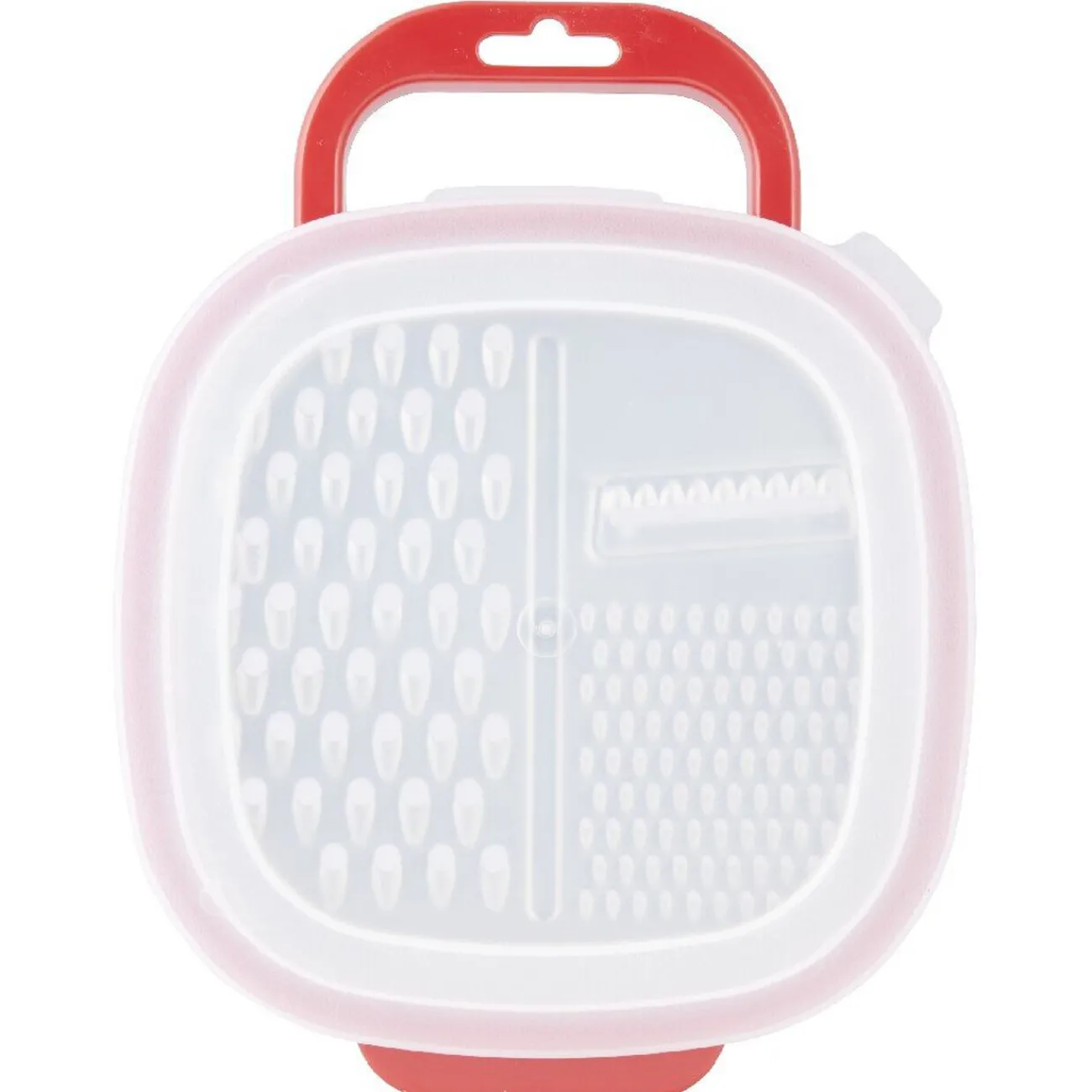 Rape 3 pièces avec son récipient et son couvercle. Idéale pour raper ses légumes, du fromages, du chocolat, et tout autre chose.