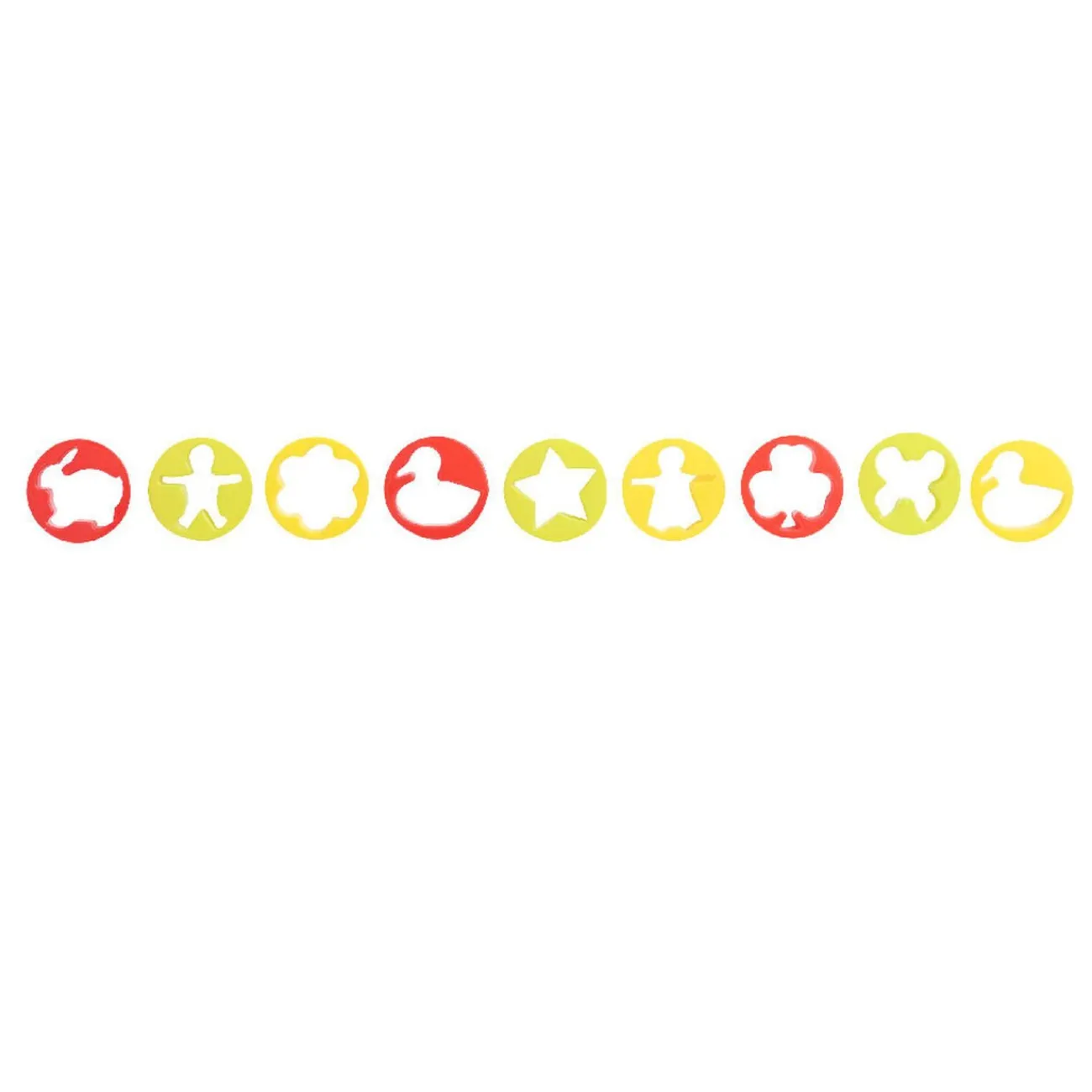 Rouleau à pâtisserie avec 9 emporte-pièces aux formes ludiques et multicolores. Dim. ø 7×47 cm, plastique.