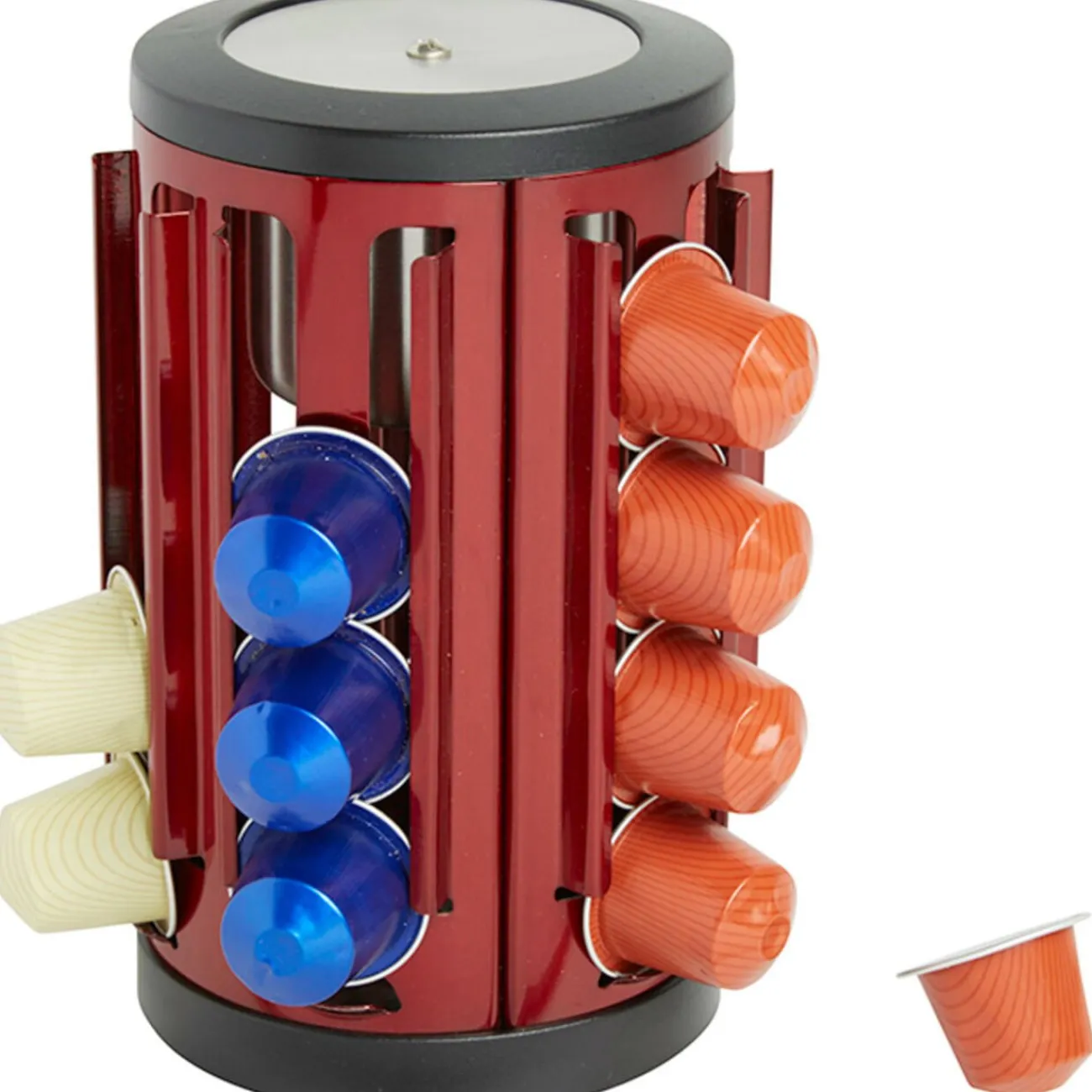 Tour à 24 dosettes 360° avec sucrier, Ø 12 cm, h. 20 cm, inox. Diff. coloris, disponibilité selon arrivage.