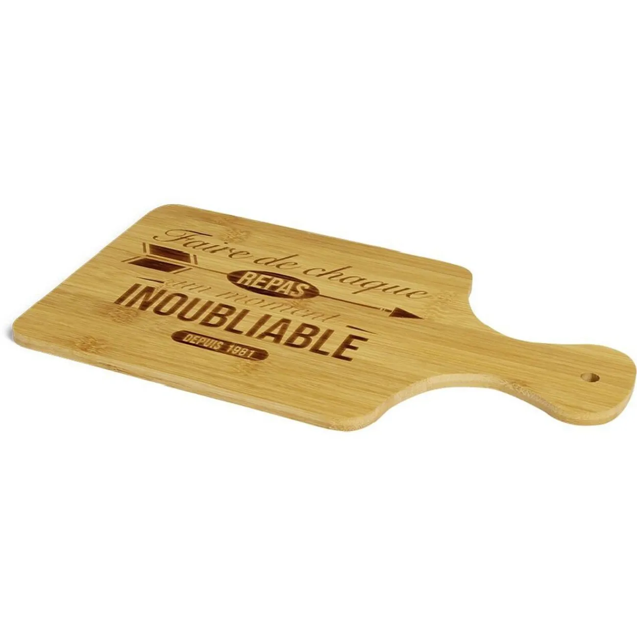Avec son manche et sa composition en bambou, cette planche à découper est idéale pour couper vous aliments et présenter vos apéritifs.