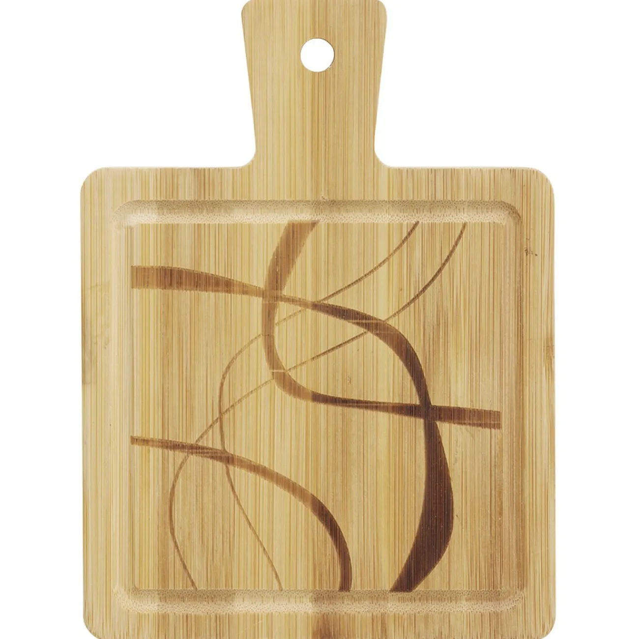 Cette planche de présentation 100% en bambou avec motifs courbes plus foncées est idéale pour joliment servir des tapas, antipastis et amuse-bouches.