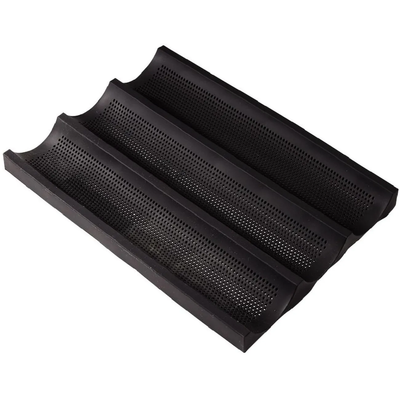 Confectionnez vos meilleures baguettes de pain grâce à cette plaque en silicone noir ! Elles ne colleront pas et vous obtiendrez un résultat esthétique parfait !