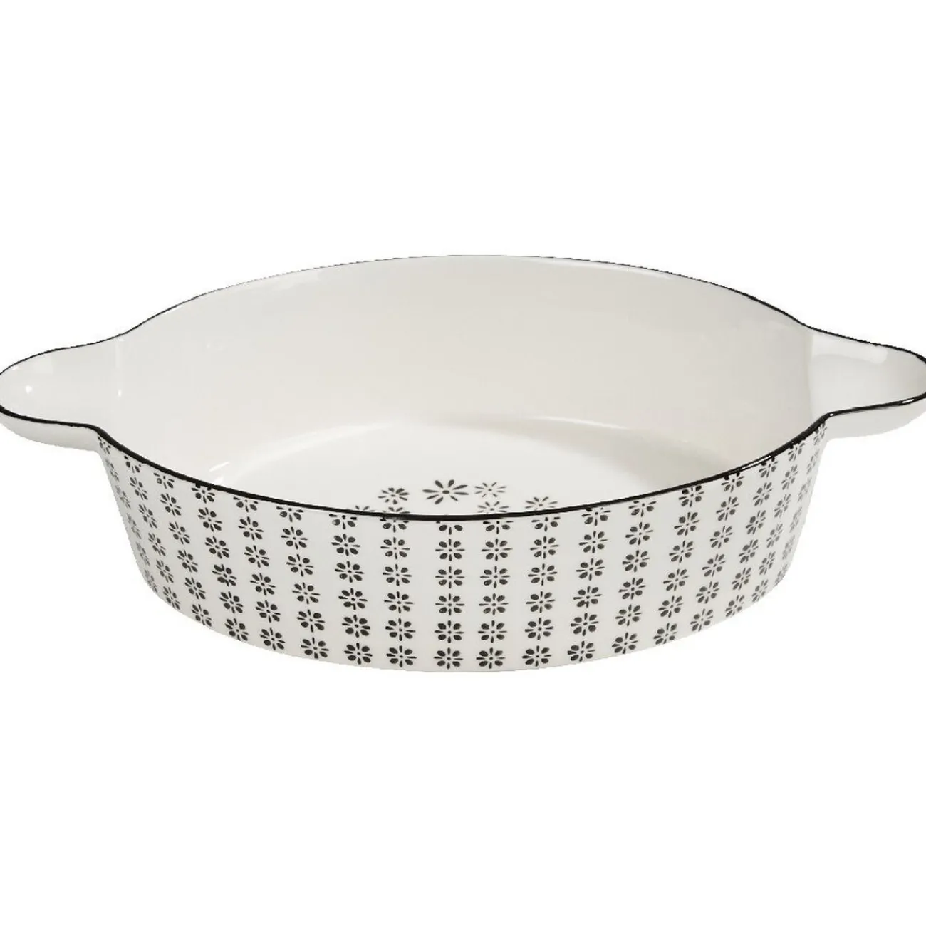 Plat à four blanc à motifs noirs de la collection Jaya.