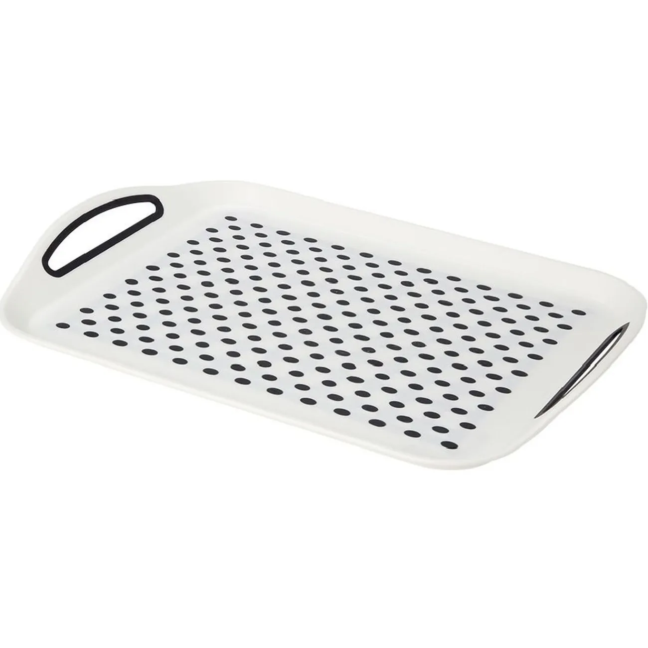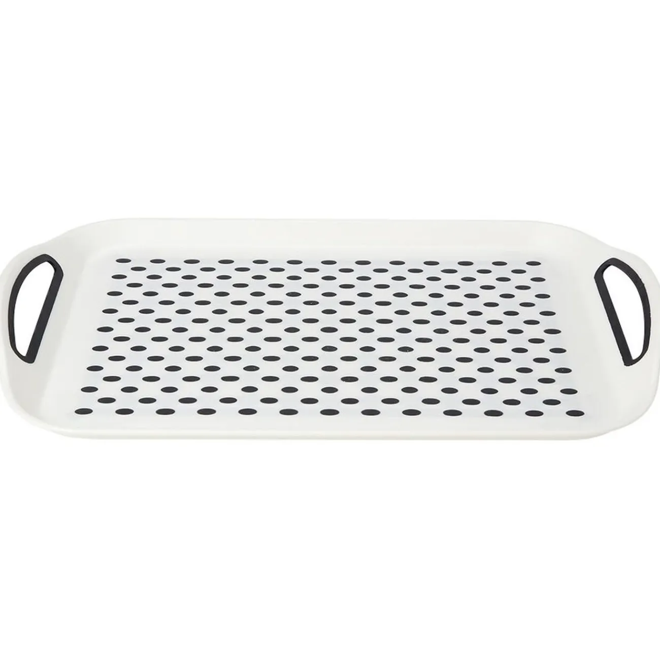 Plateau antidérapant blanc à pois gris, parfait pour le service ou pour profiter d’un petit-déjeuner au lit sans risque de renverser quelque chose.