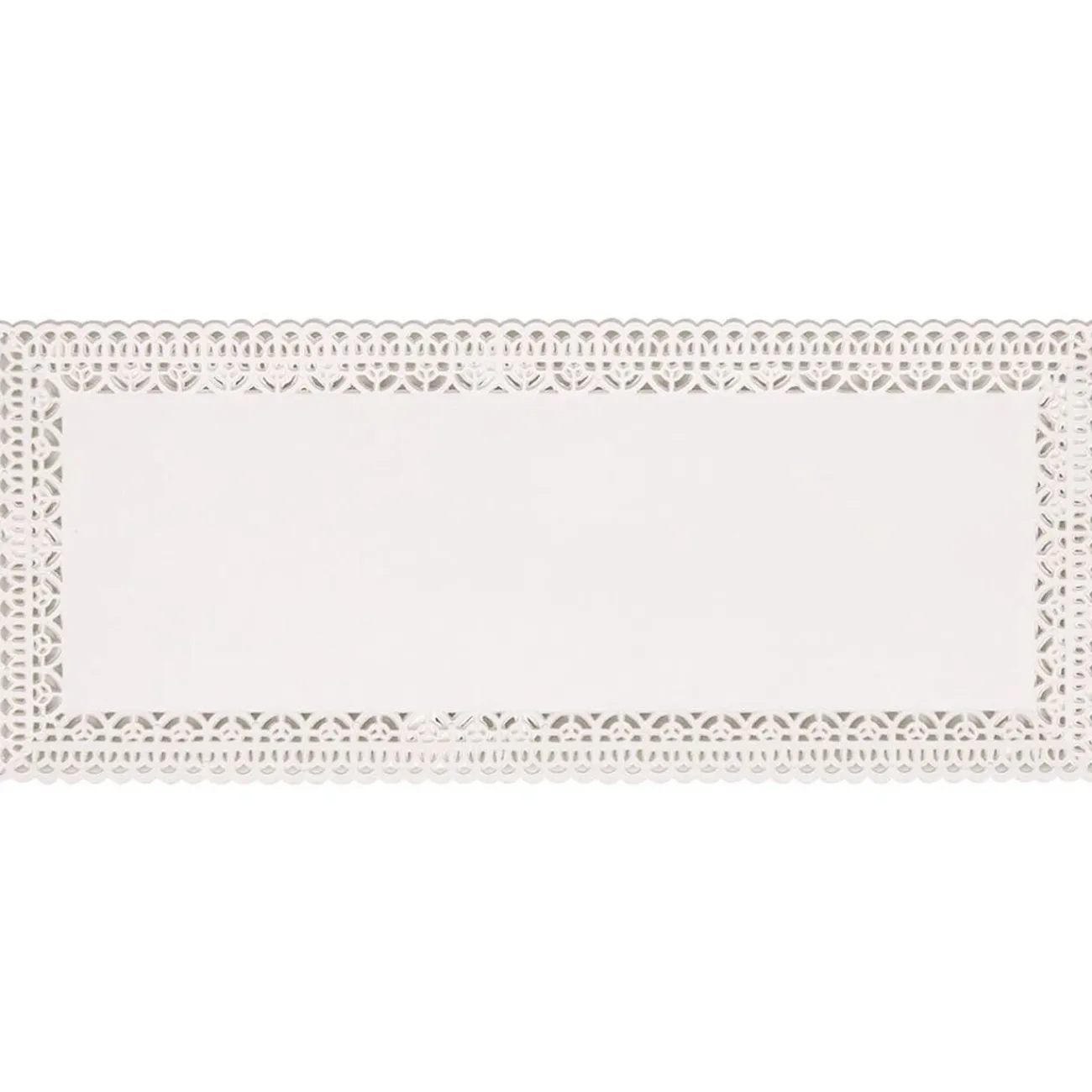 Plateau de présentation rectangulaire en plastique blanc avec joli décor en relief sur tout le contour.
