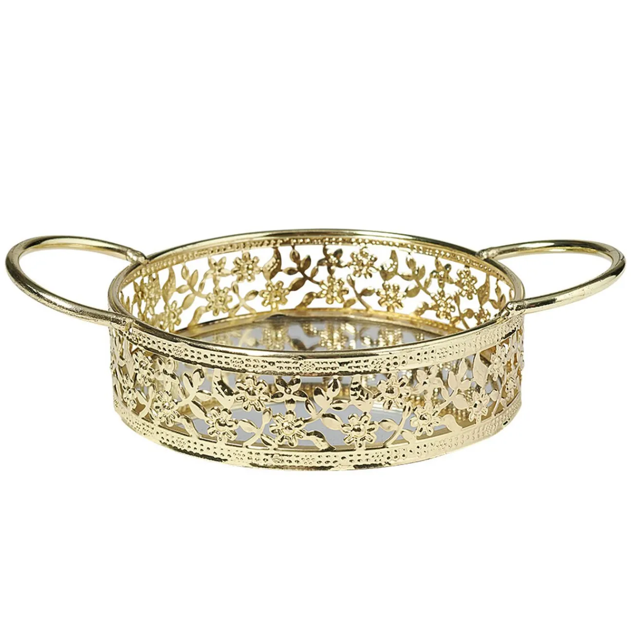 Ce plateau en verre avec armature doré apportera une touche chic et raffinée à votre service.