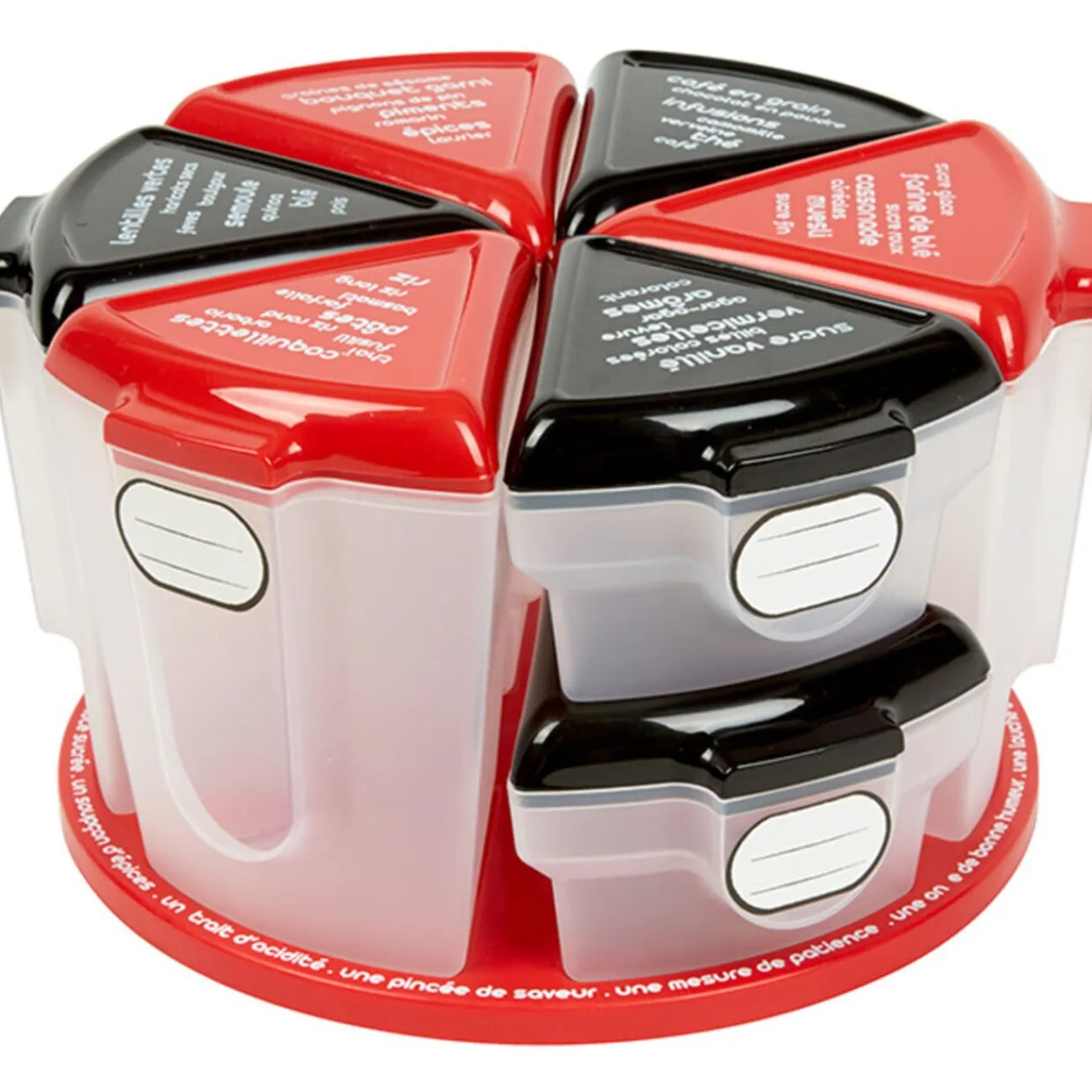 Plateau tournant aux 8 rangements en plastique, ø 28 cm. Boîtes alimentaires en forme de camembert pour ranger ses ingrédients en toute simplicité.