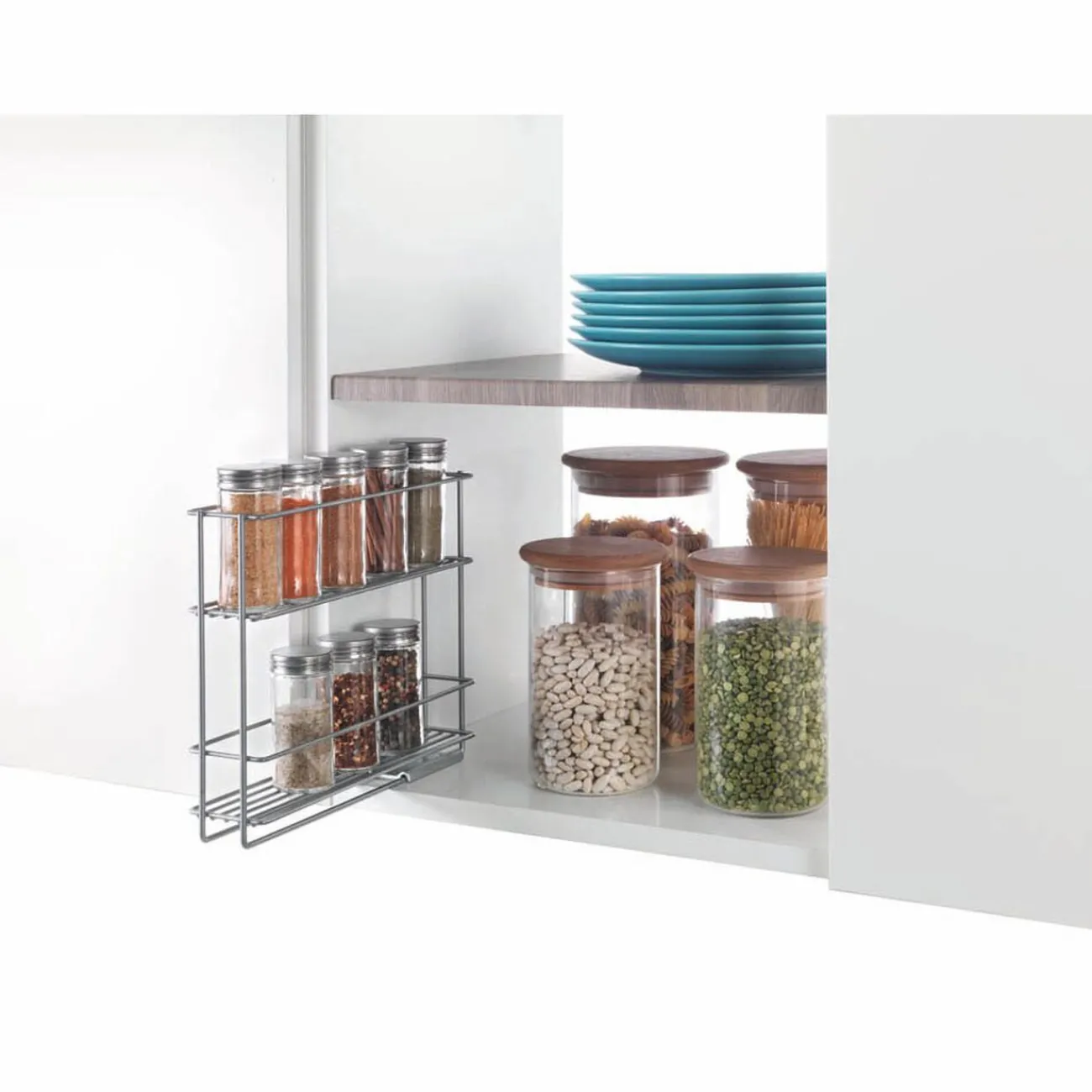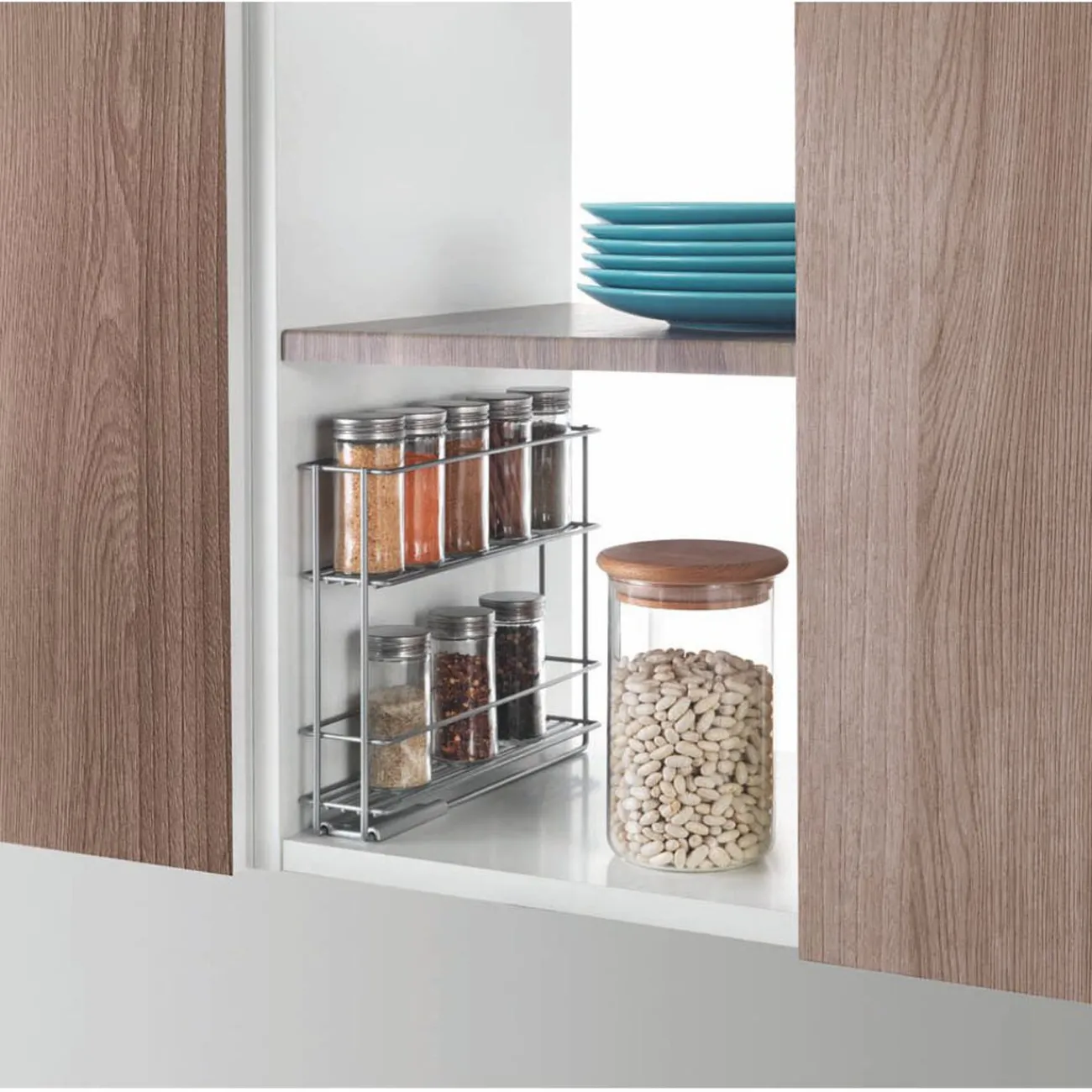 Votre porte épice sera fixé et vous pourrez le faire coulisser à chaque besoin d’un nouvel épice, peut supporter jusqu’à 10 pots.