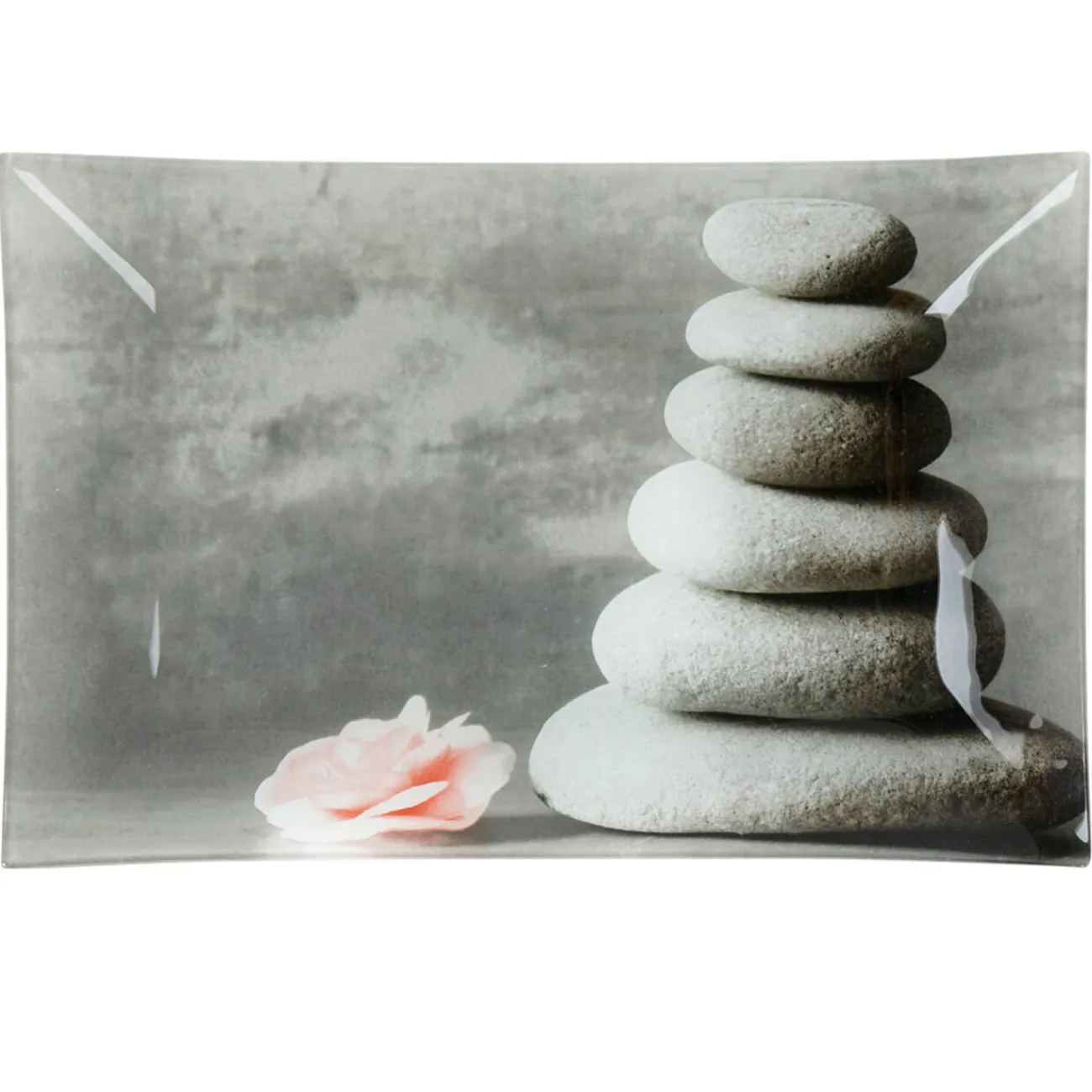 Assiette plate rectangulaire design galets gris zen.