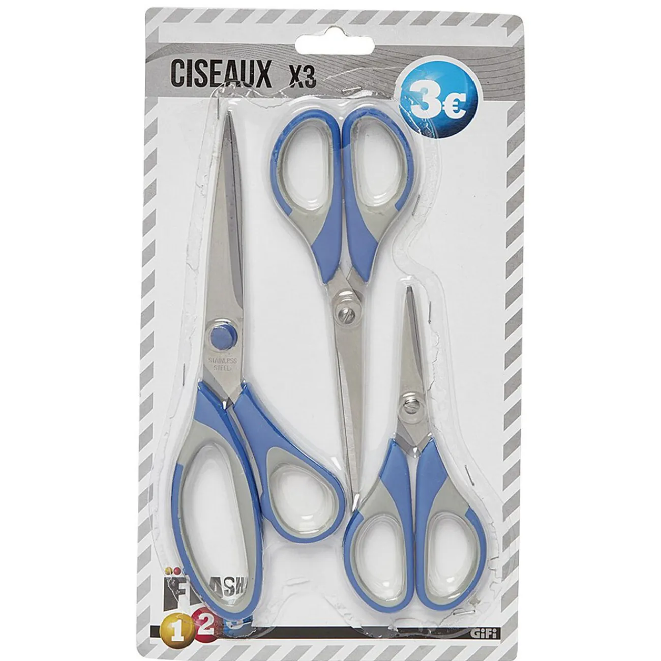 Lot de 3 ciseaux de taille différente pour cuisine, très pratique et polyvalent.