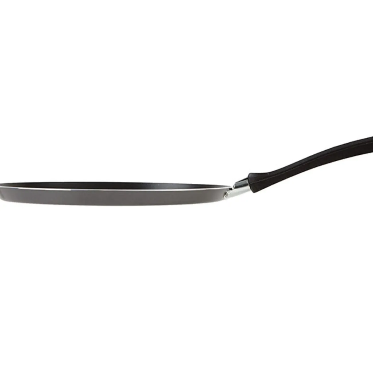 Crêpière grise en aluminium, ø 28 cm, épaisseur 2.5 mm, revêtement anti-adhérent sans PFOA. Poignée bakélite, tous feux dont induction.