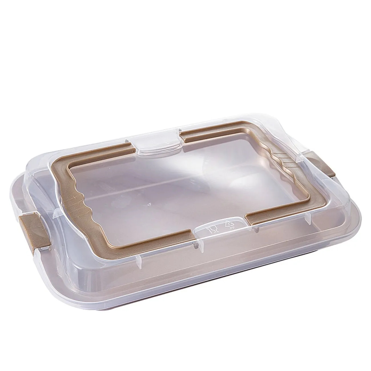 Moule rectangulaire couleur champagne avec couvercle de transport.