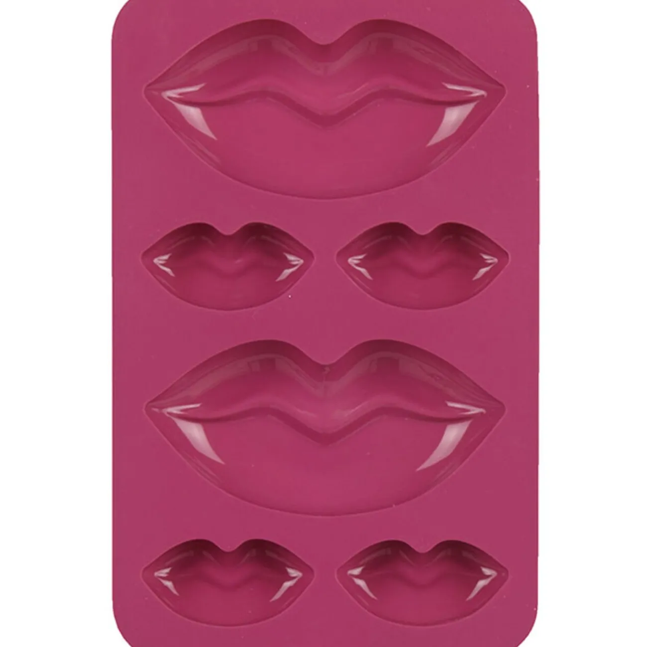 Moule en silicone de 6 bouches, planche dim. 17,5×11 cm, bouches dim. 9,5×4,5 cm et 4,5×2 cm. Diff. coloris, disponibilité selon arrivage.