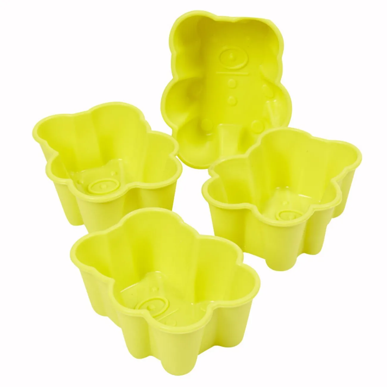 4 moules en silicone ourson vert anis, dim. 7x6xh.3 cm. Cuisson four et Micro-ondes, passe au lave-vaisselle, + 220°C, – 20°C.